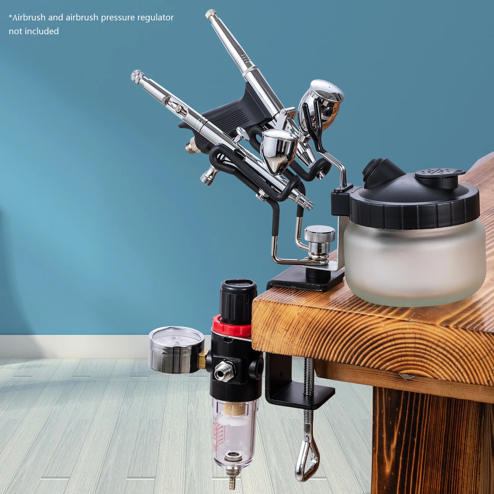 Также разработан с боковой стойкой для удерживания регулятора давления аэрограф.