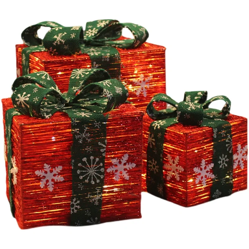 3 шт./компл., Рождественское украшение, Подарочная коробка с огнями, Рождественская елка, украшение, светящееся железное искусство, домашний уличный торговый центр, подарок Navidad Xams
