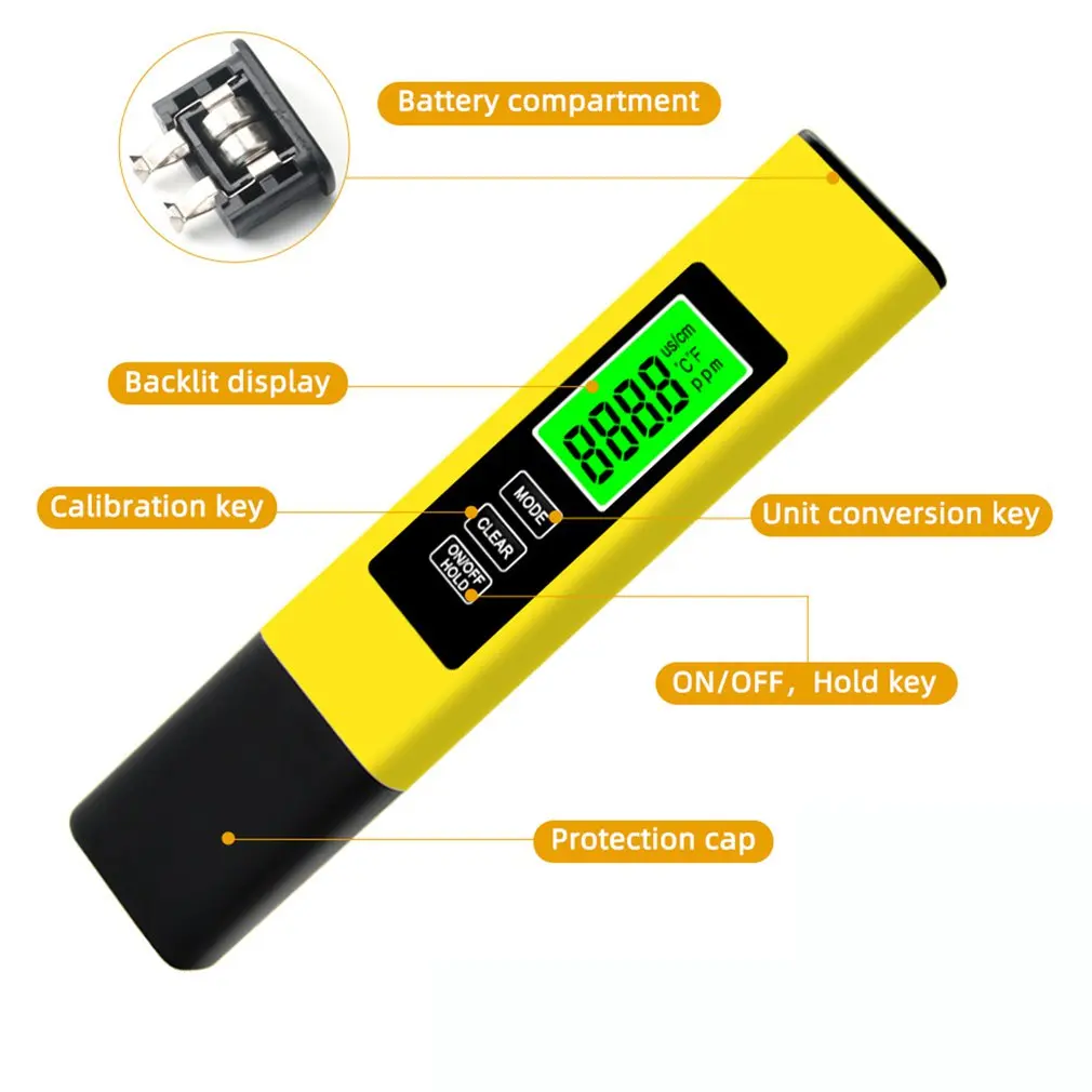 3 в 1 TDS тестер, Измеритель Качества Воды, ЖК-ручка для промышленных больниц, плавательных бассейнов, бытовой водопроводной воды, проверка качества