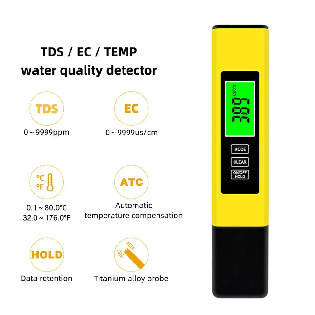 Этот инструмент может измерять TDS, EC, температуру и может считываться при погружении в жидкость и имеет широкий спектр применений.
