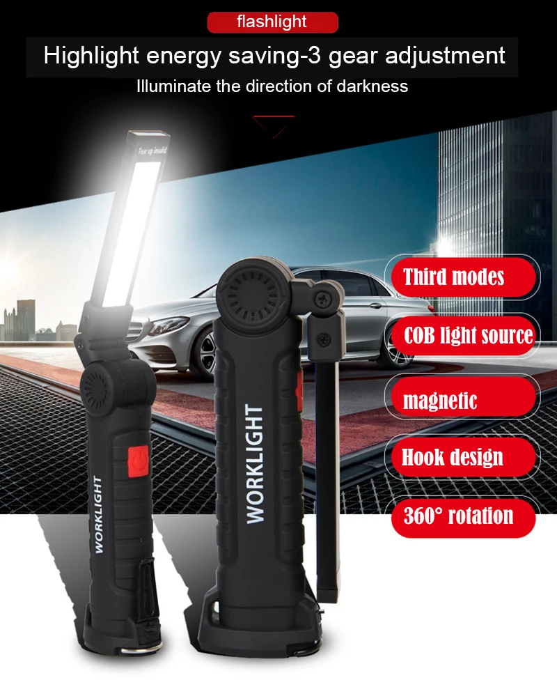 *High COB LED,Low COB LED and LED light 3-different lighting modes to meet your lighting needs.