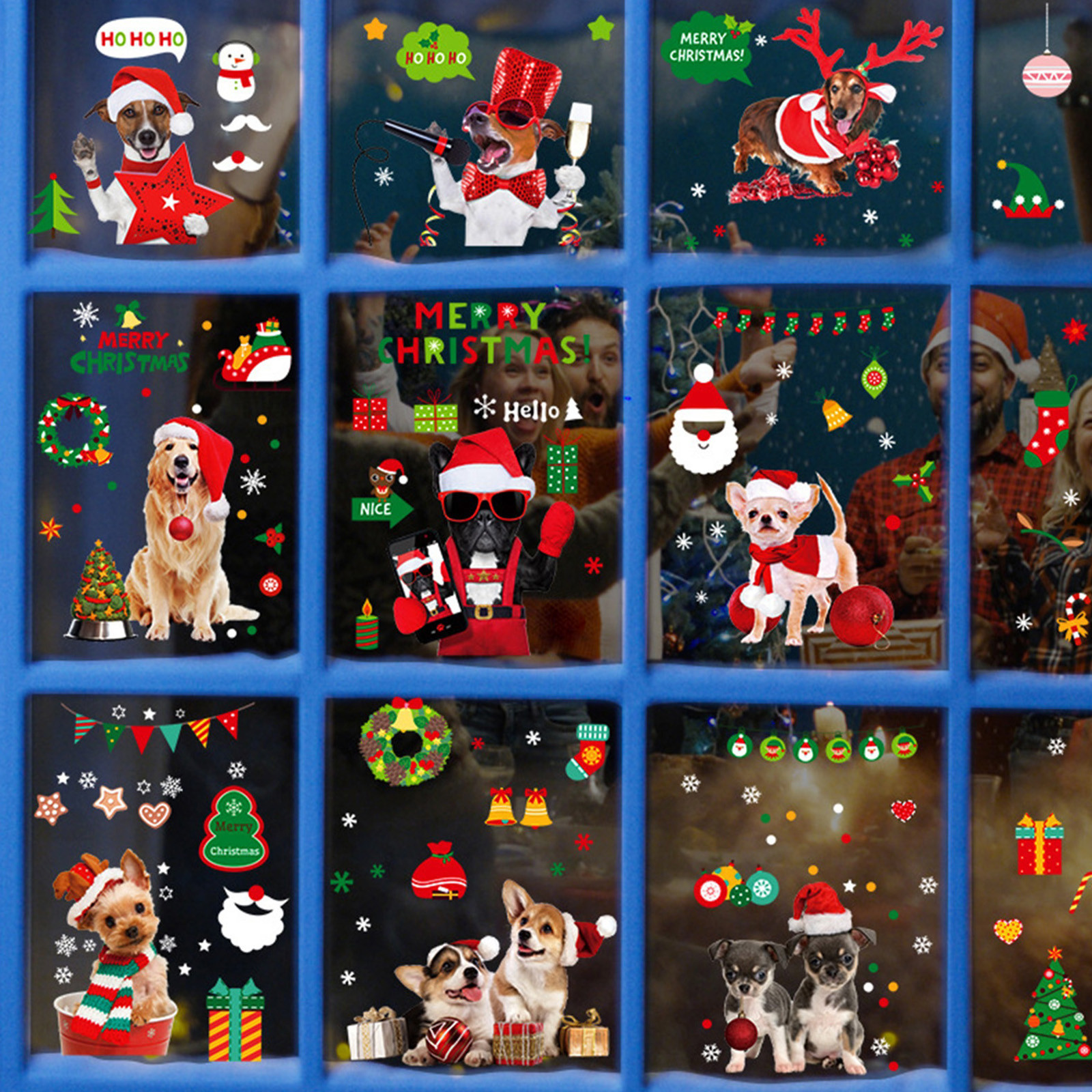9 шт. Двухсторонние цветные рождественские настенные наклейки для спальни, гостиной, торгового центра, магазина, окна, декорации, съемные