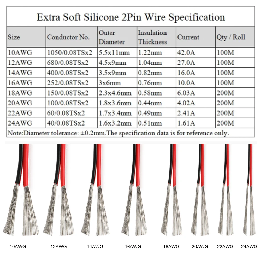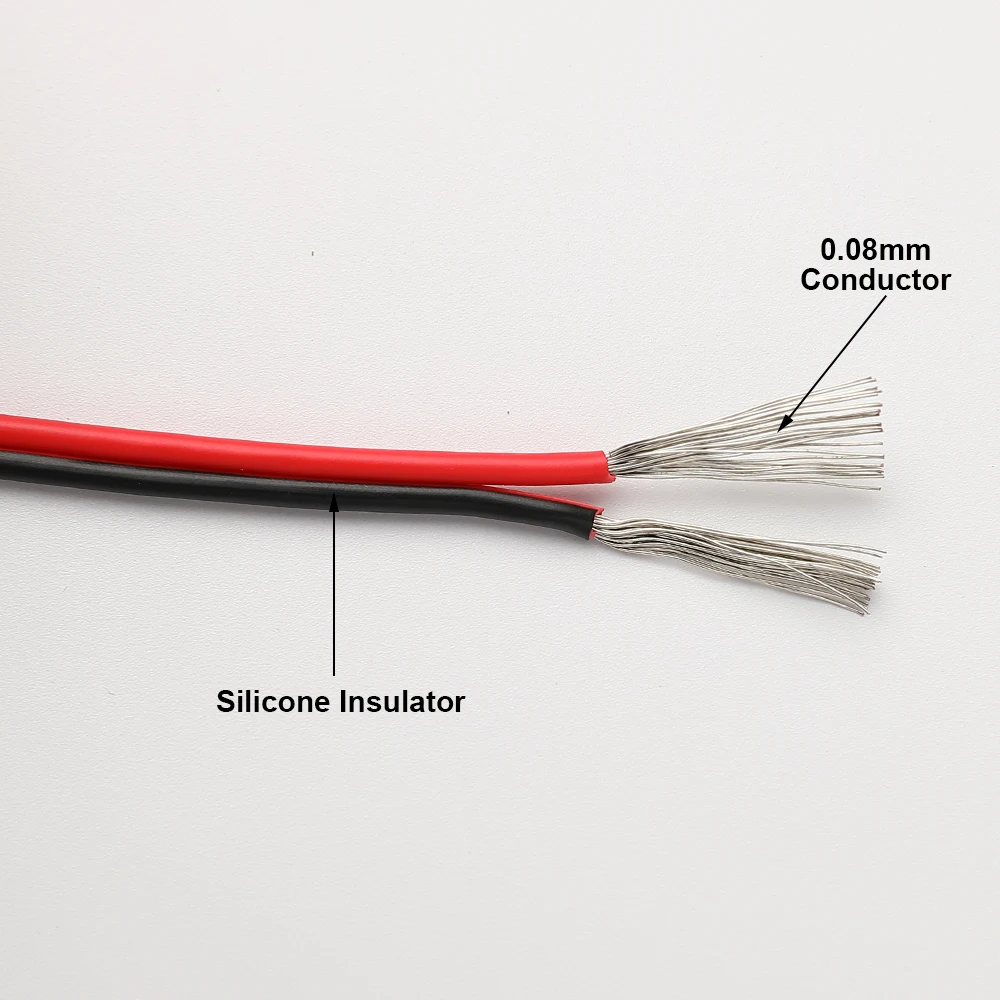 1 meter 10 12 14 16 18 20 22 24 AWG 2Pins super soft silicon rubber copper wire DIY lamp holder cable black red
