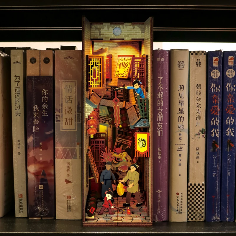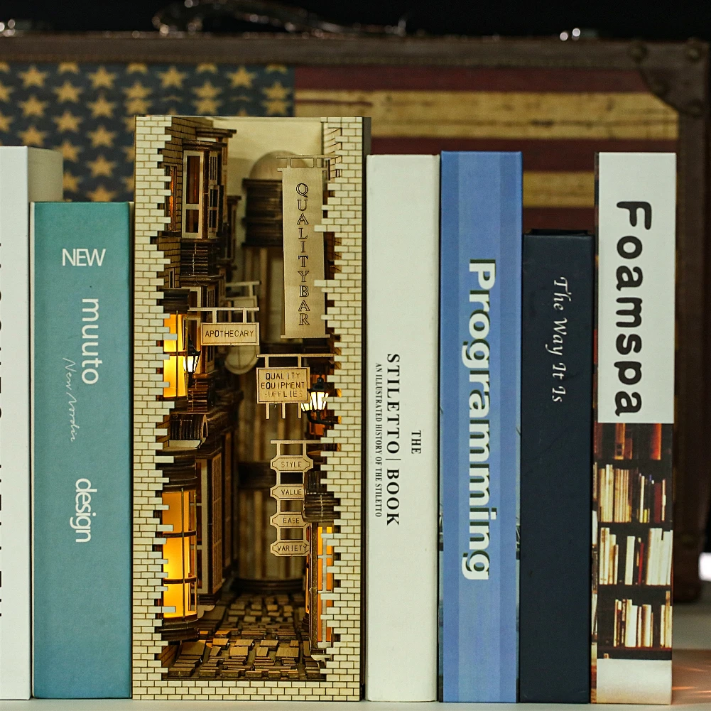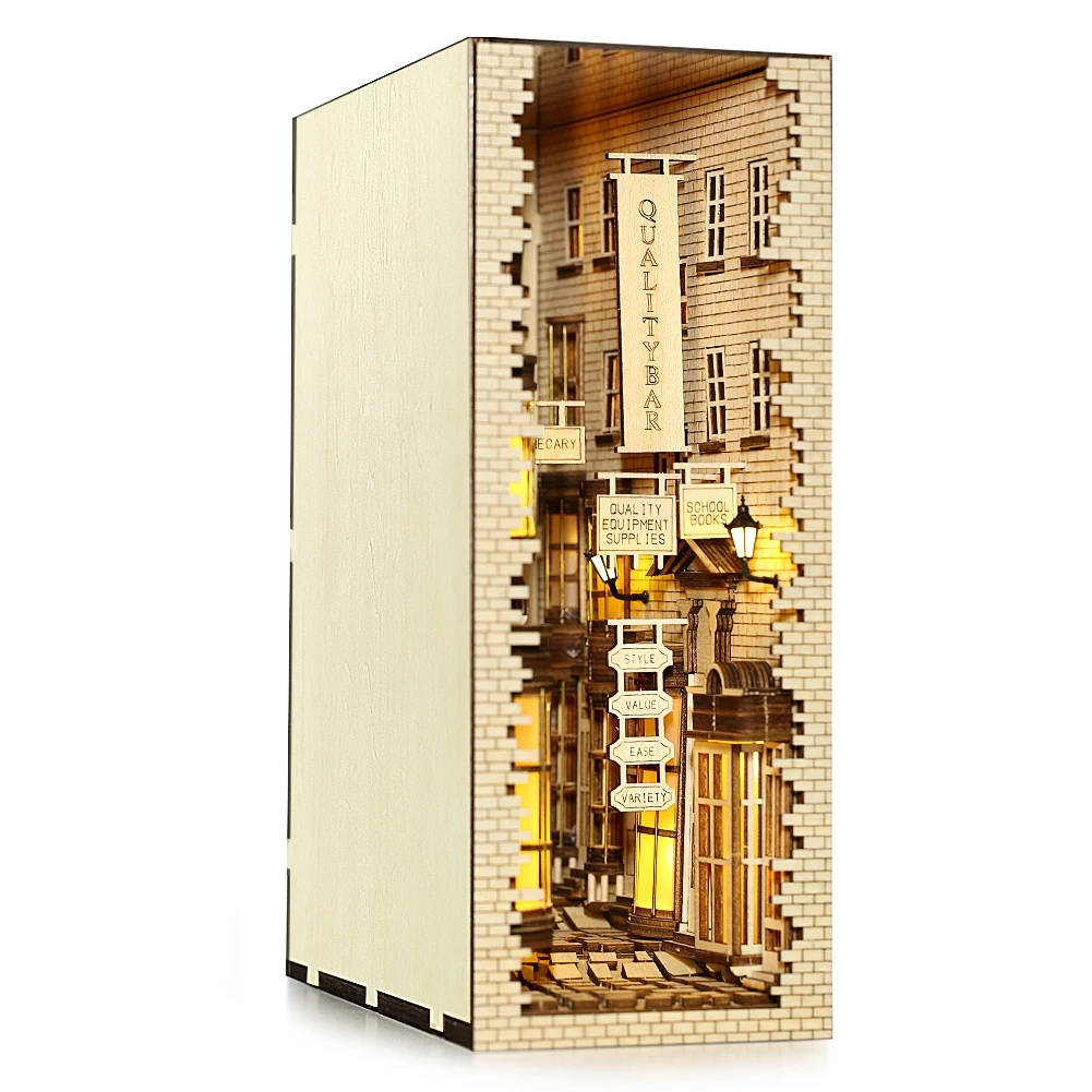 1. Точно говоря, переулок книги nook не предназначен для играть, но коллекционные здания или книжные полки украшения. Он поставляется с деталями, нужно собрать DIY. Сборка подходит для людей старше 14 лет, отличный способ общения с подростками или взрослыми и идеальный проект для времени.