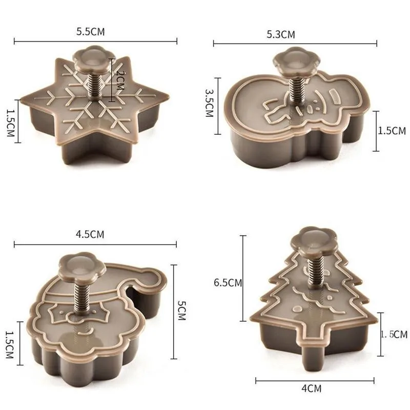 Новинка 4 шт. формочки для печенья 3D плунжеры для печенья DIY формы для выпечки рождественские формочки для печенья