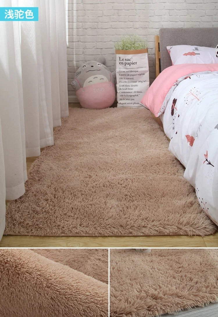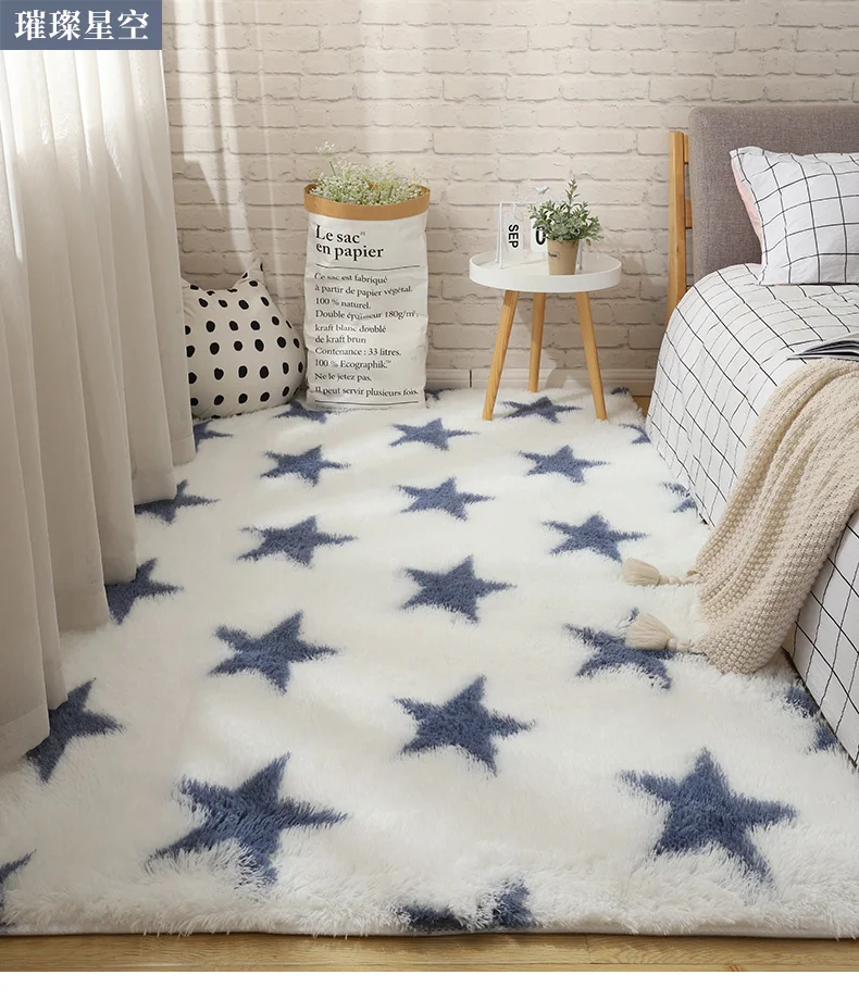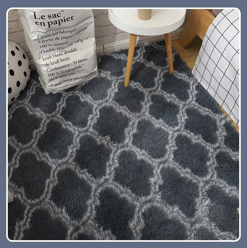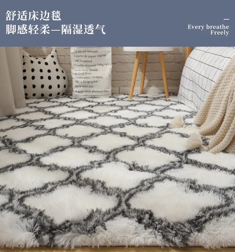 The home bedroom carpet is colored by reactive printing and dyeing, durable and not faded, not easy to shed hair, high quality plush, plastic anti-skid bottom!