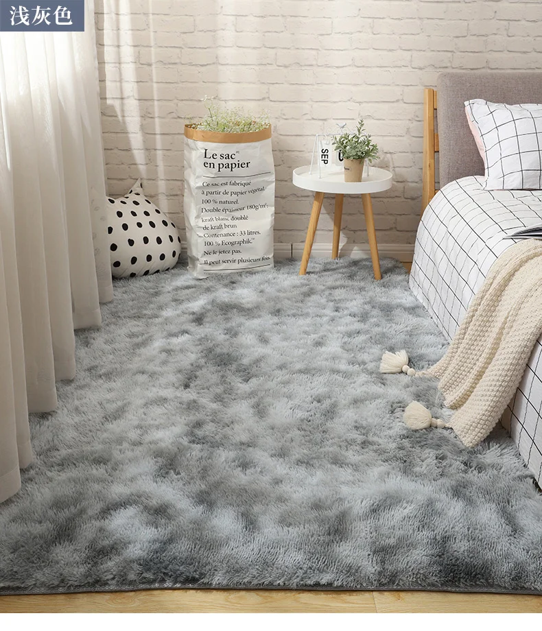 The new tie-dyed carpet in 2020 is suitable for bedroom, living room, children's room decoration, the pattern is more layered, especially suitable for customers who like furry and fluffy carpets