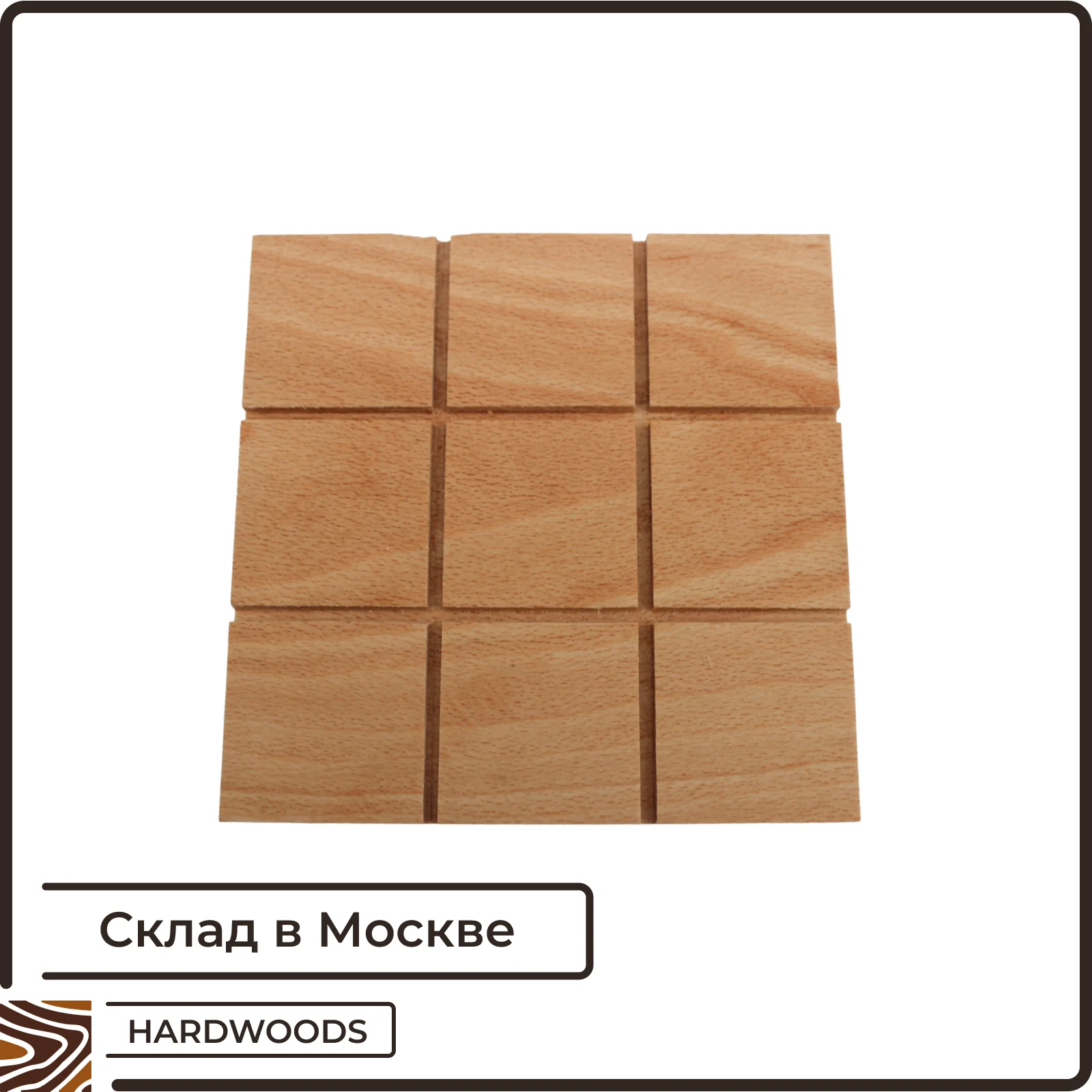 Подставка под горячее из бука в форме квадрата цельной конструкции выполнена с декоративными надсечками, выполняющими не только функцию украшения изделия, но и обеспечивающими стабильность установки посуды на столе.