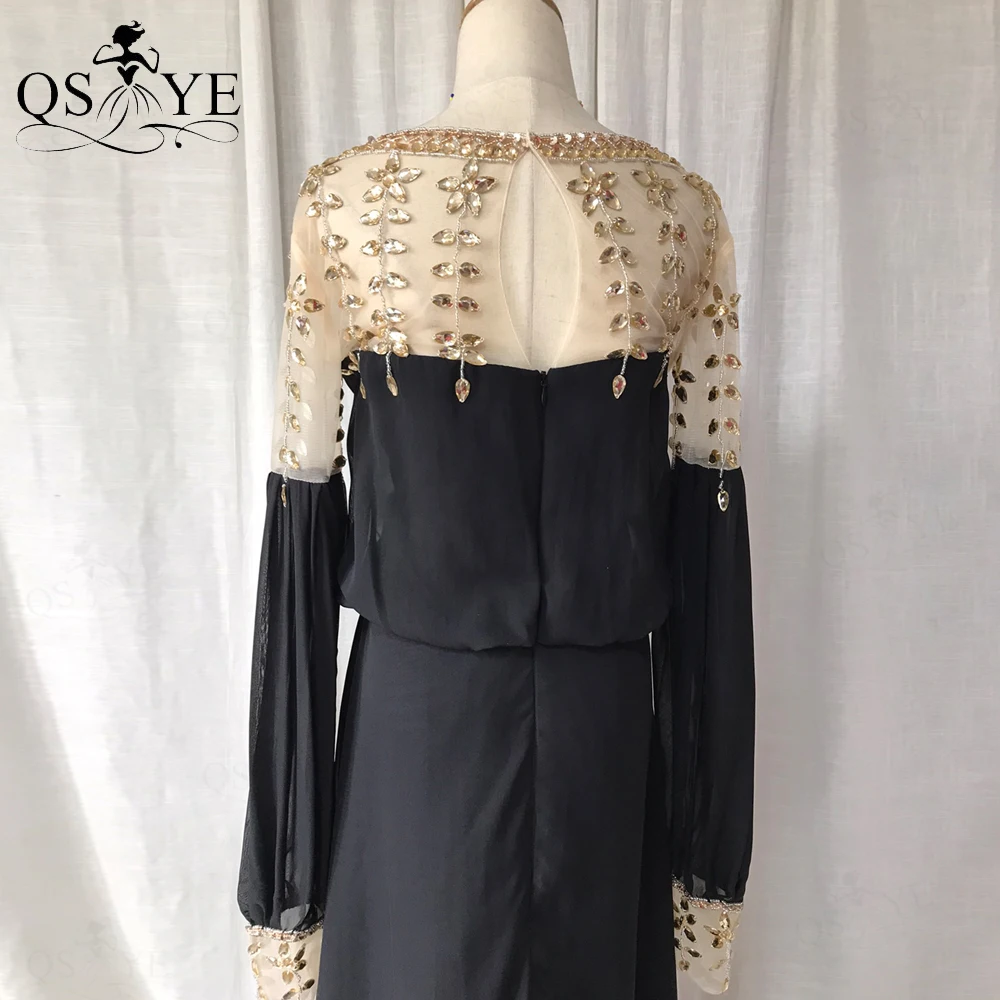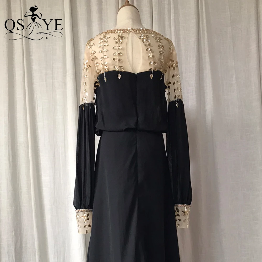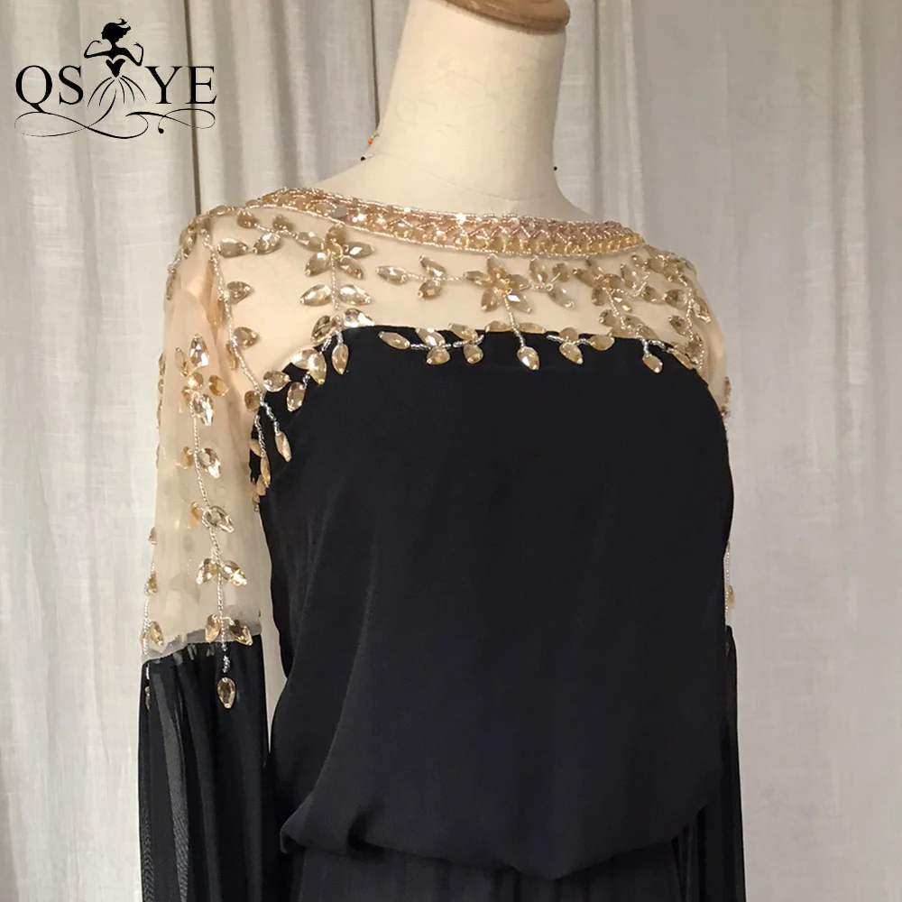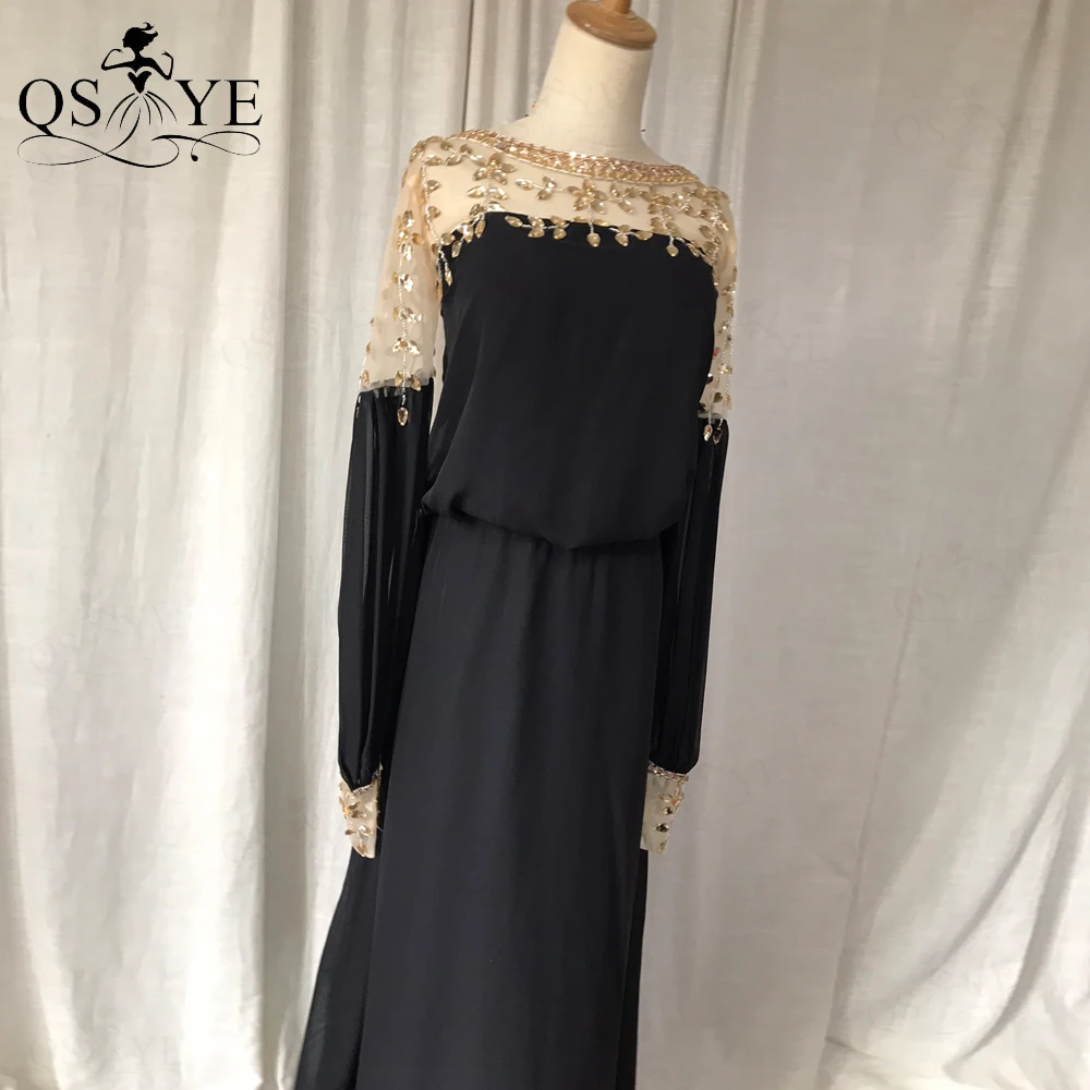 Женское длинное вечернее платье черное трапециевидной формы с длинными рукавами