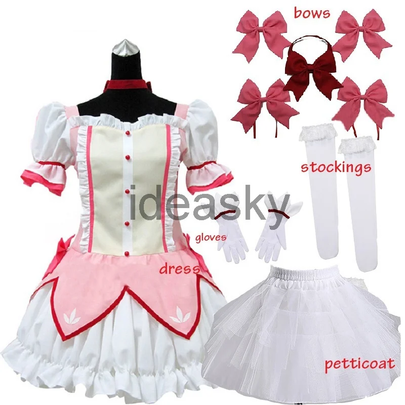 Мадока маджика, Магическая девочка, Мадока, Мадока, костюм для косплея, Короткое бальное платье с бантами, костюм для косплея, парик, перчатки