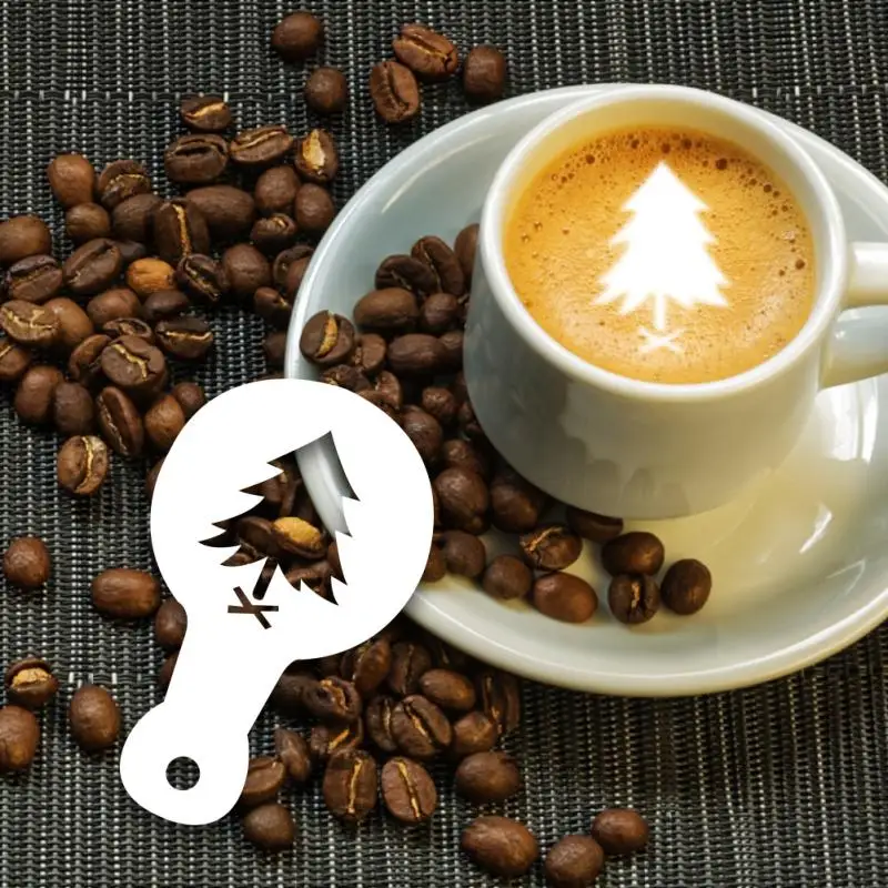 Шаблон печати на выбранной форме, такой как: Над Пеной Кафе Латте, капучино кофе или торт. Затем, с какао-порошком, корицей, шоколадным порошком, зеленым чайным порошком и другим порошковым мелким сетчатым ситом в печатание формы и встряхивание. Затем, снятие порошковой трафаретной печати, удаление формы, так что оставайтесь красивой графикой, которую вы хотите, в поверхности кофе или торта будет!