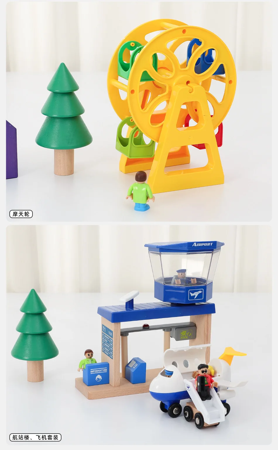 Добавьте к вашему набору: этот набор совместим со всеми популярными брендами деревянных наборов поездов, включая Brio, Chuggington, Thomas и другими. Используйте этот набор, чтобы добавить игрушки и аксессуары в качестве расширительного пакета для вашего имеющегося набора и сделать его больше и лучше, чем когда-либо!