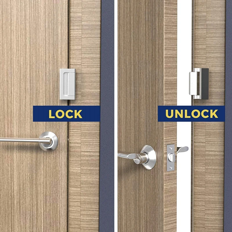 Легко разблокировать-Этот защитный дверной замок может быть легко разблокирован путем зажима верхней и нижней дверных замков, а затем вытяните замок на другую сторону.