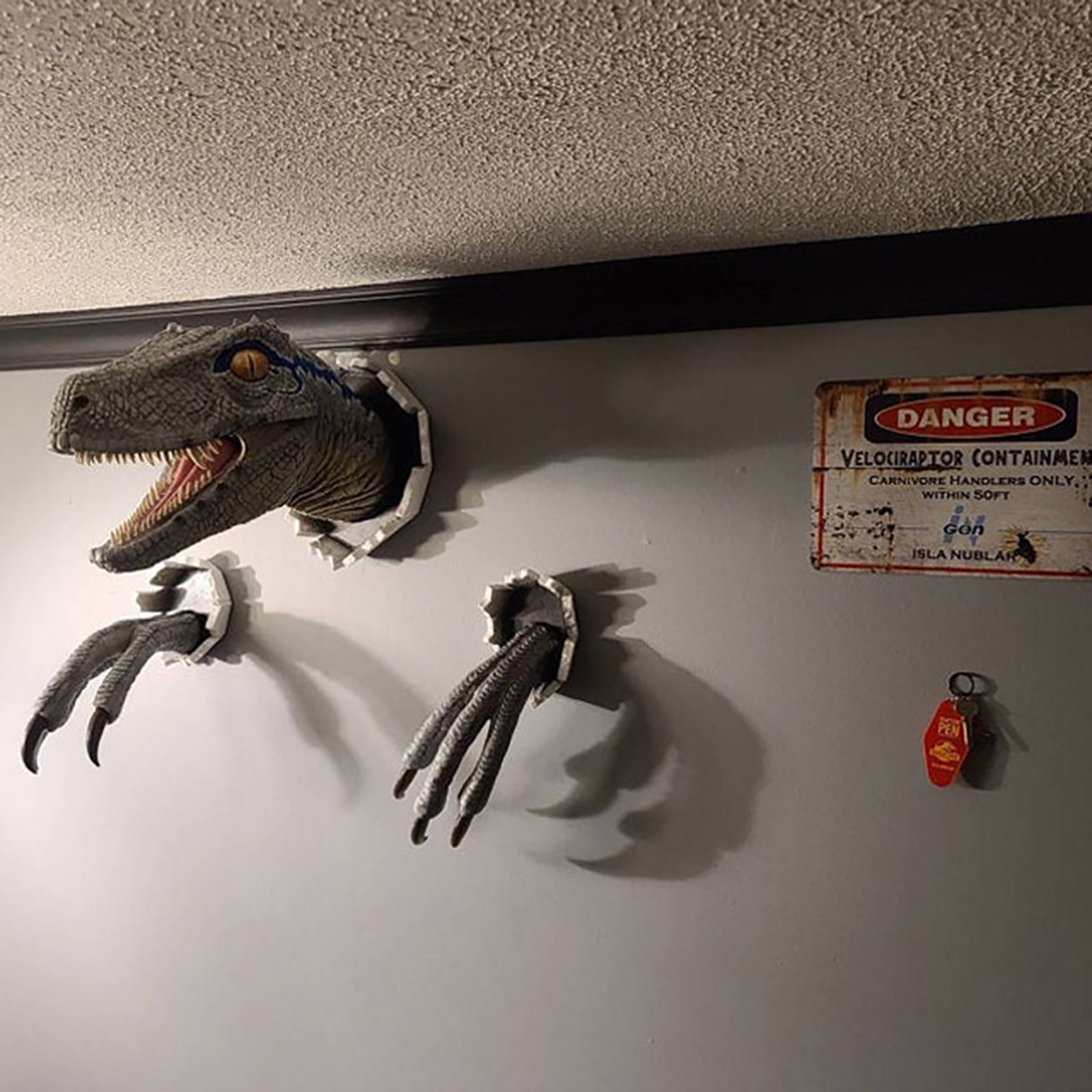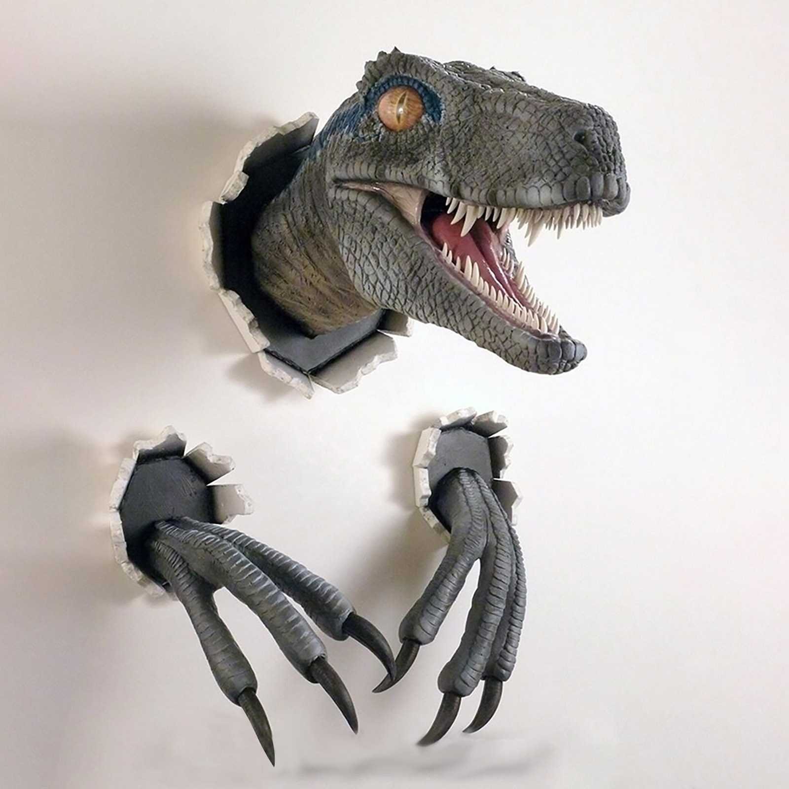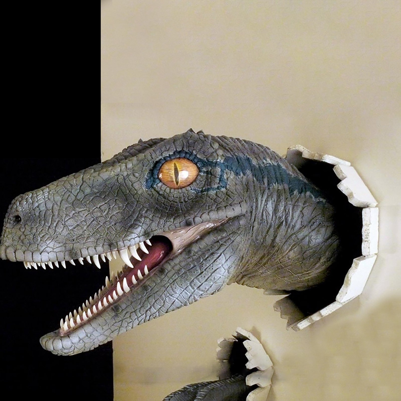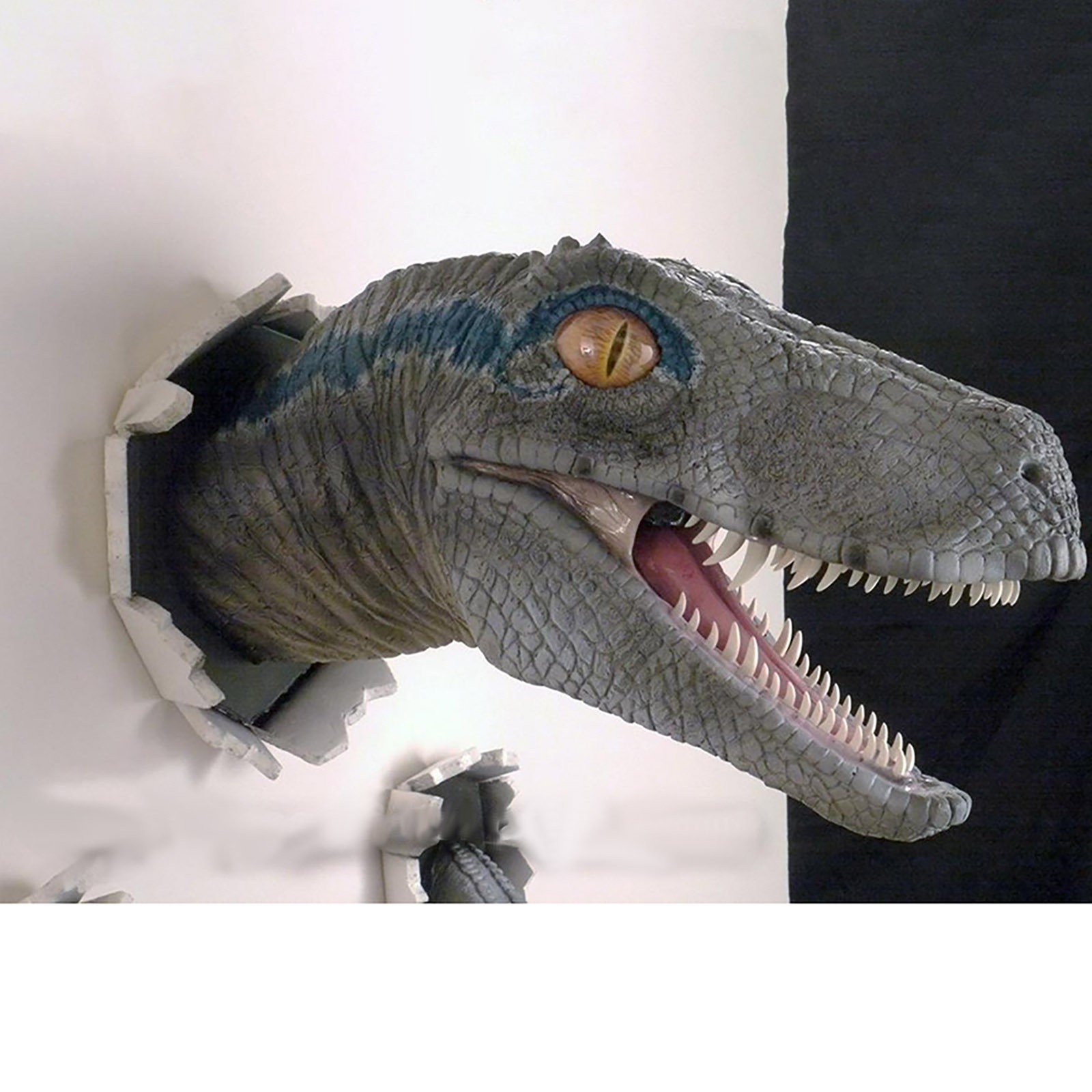 Синий Велоцираптор на стену реквизит в виде динозавра настенная статуя с головой