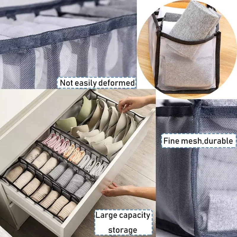 Сетчатая коробка для хранения нижнего белья моющаяся, гладкая и прочная и не выцветает после стирки. Его можно сложить, когда он не используется, и его можно поместить в чемодан во время путешествий или бизнеса.
