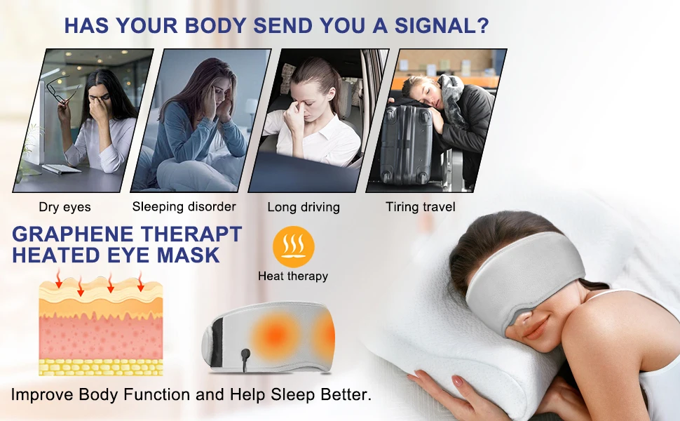 Новый дизайн, Графен, Дальняя инфракрасная маска для глаз с подогревом для сна, нагревательная терапия для питания кожи вокруг глаз, снимающая усталость, регулируемая температура, блокирующая свет, мигающий глаз, подходит для путешествий или работы
