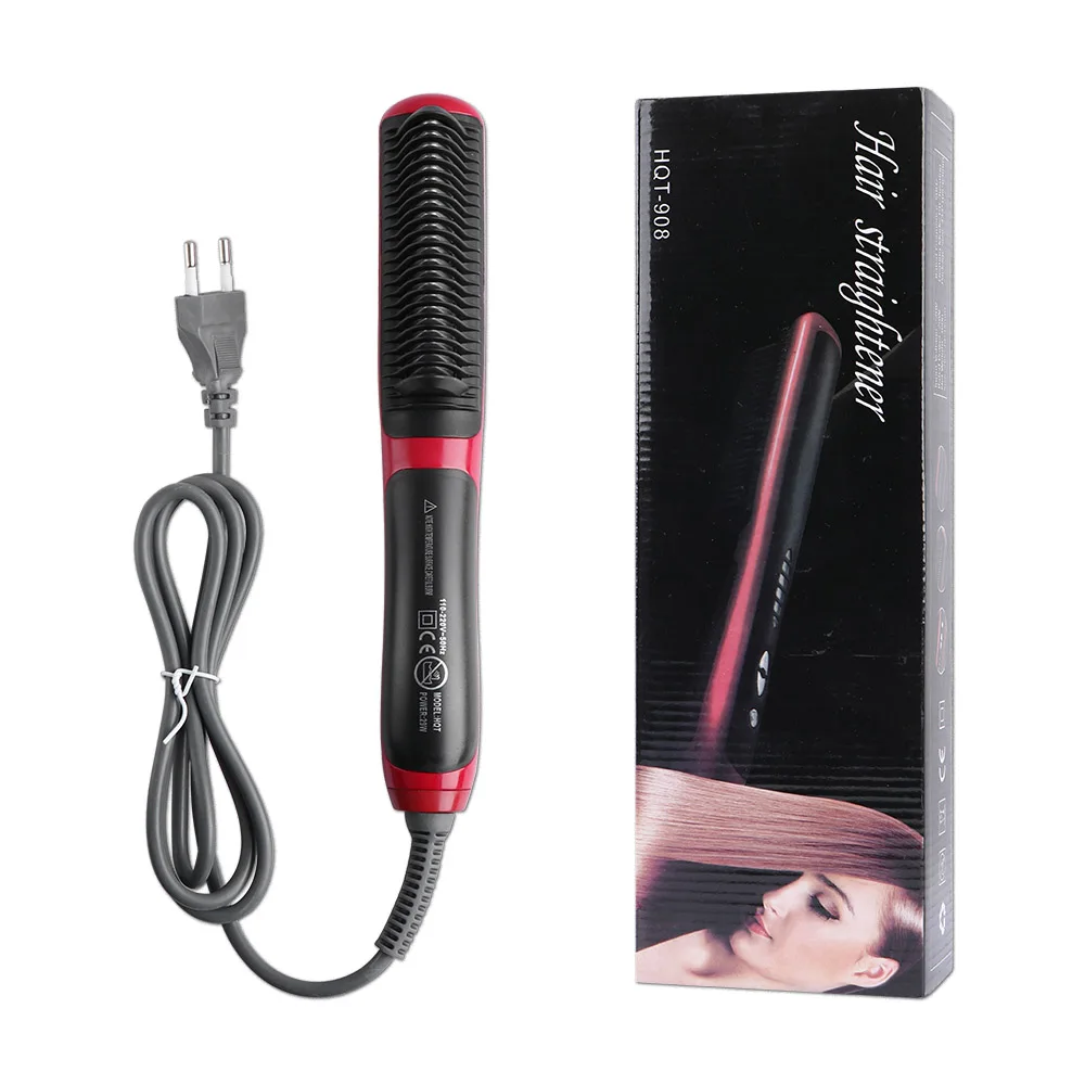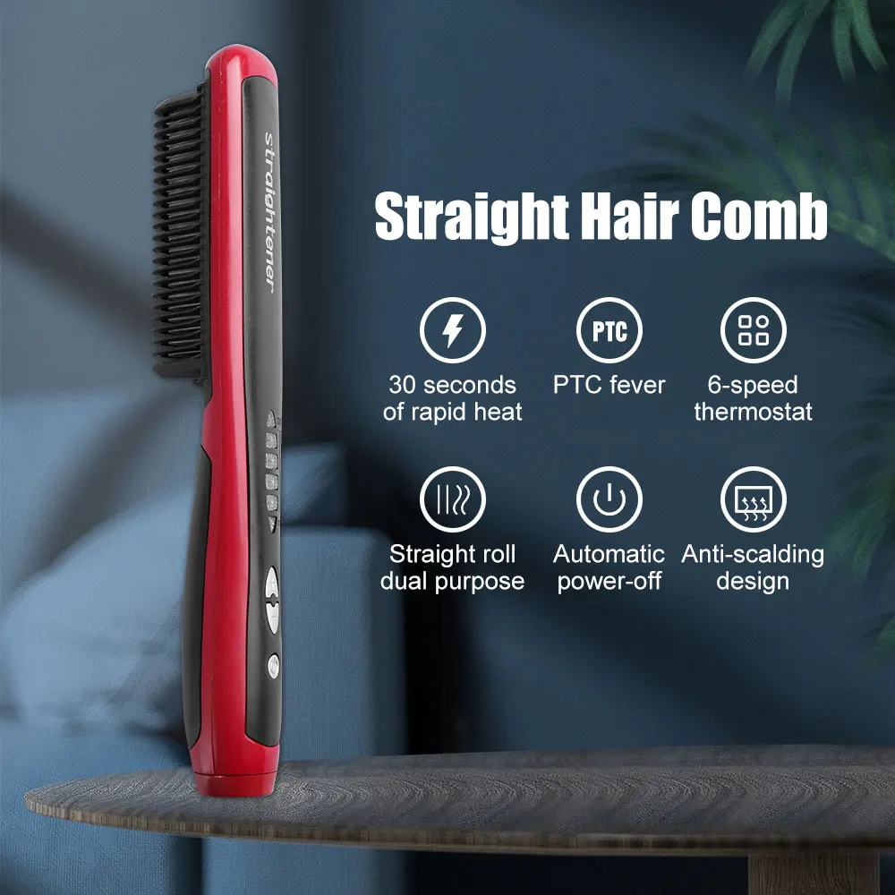 Comb design with heated teeth for long-lasting styles and even heat distribution.