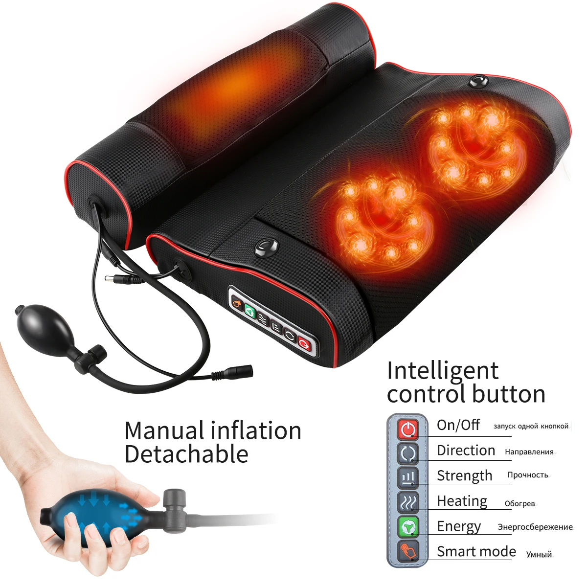Electric Neck Relaxation Massage Pillow Back Heating Kneading Infrared therapy shiatsu Massager