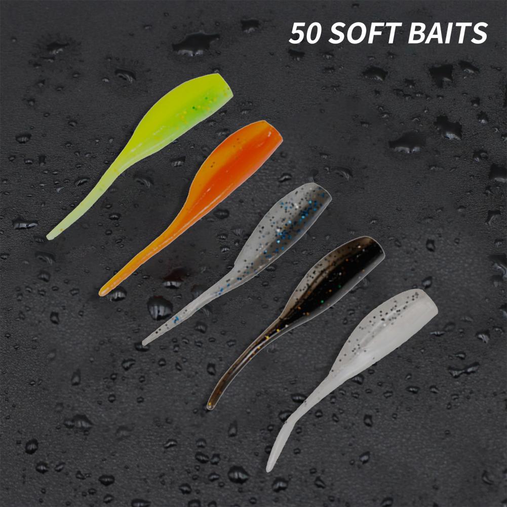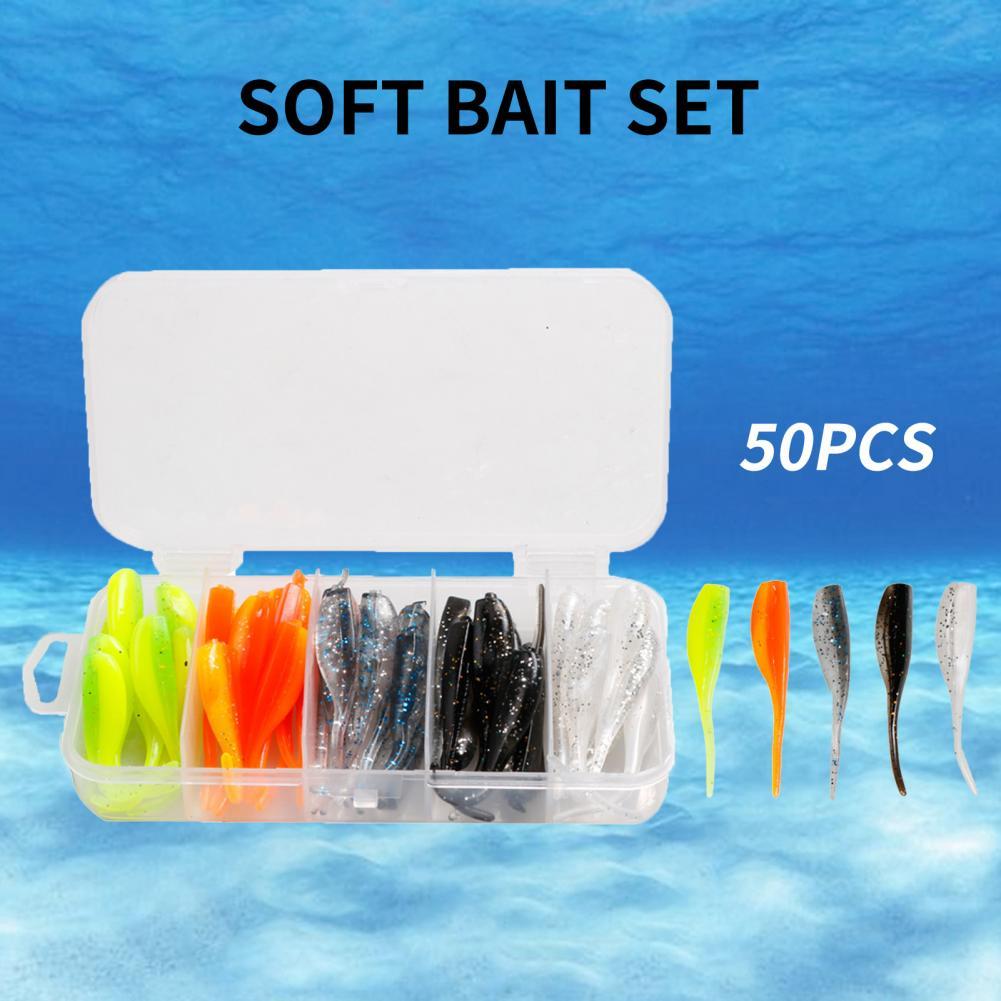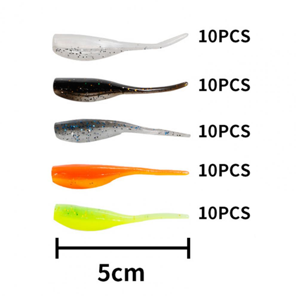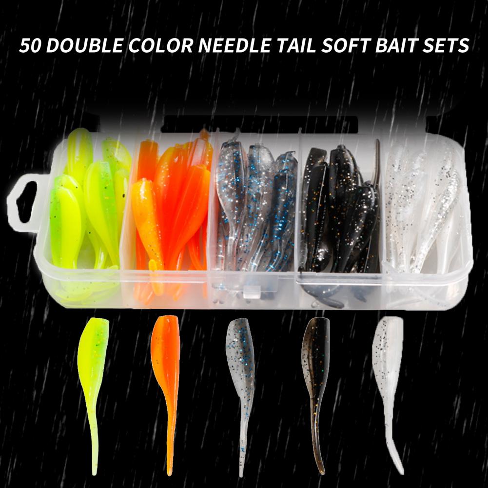 50 шт./коробка пластиковая рыболовная приманка двухцветная поддельная приманка Яркая Мягкая приманка износостойкая рыболовная игла для приманок хвост Мягкая приманка для рыбалки