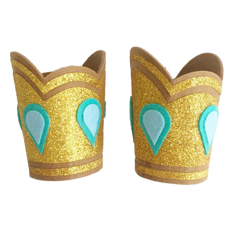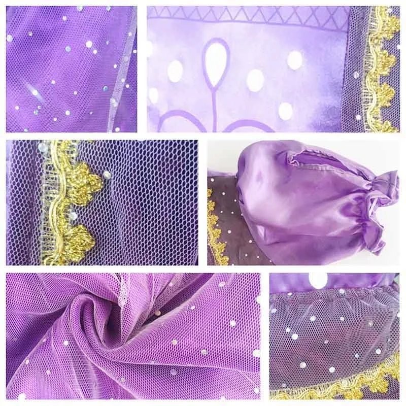 Shine Toddler Girls Costume: She'll feel just like a genie in this Shimmer costume. The purple genie pants and top are both printed with glitter detailing and the top has an attached purple vest. The included pink genie wig has an attached jewel headband. Slip on the gold wrist cuffs and pearl necklace to complete this Shimme genie costume.