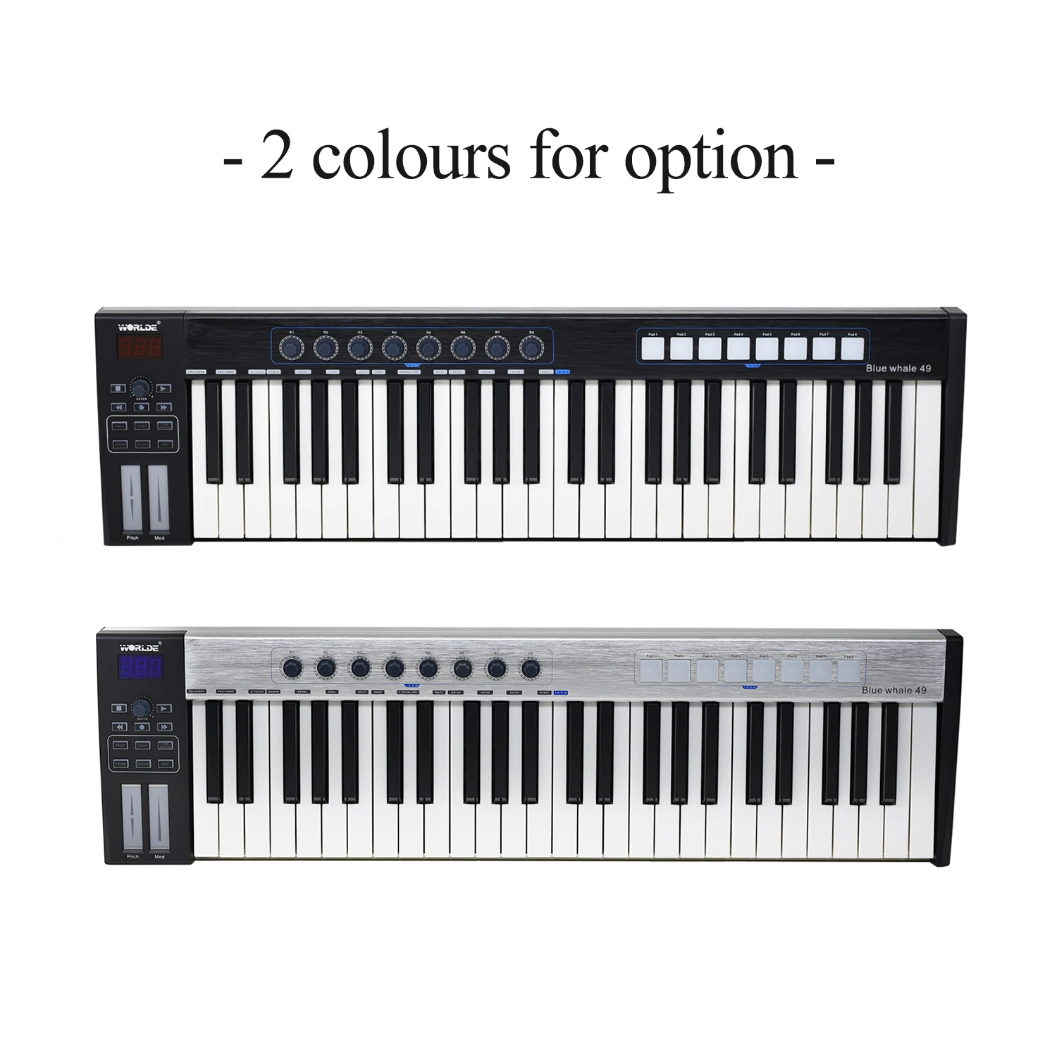 Профессиональная клавиатура MIDI с матовой алюминиевой панелью, четкий светодиодный дисплей и 49 полувзвешенных клавиш с последующим прикосновением.