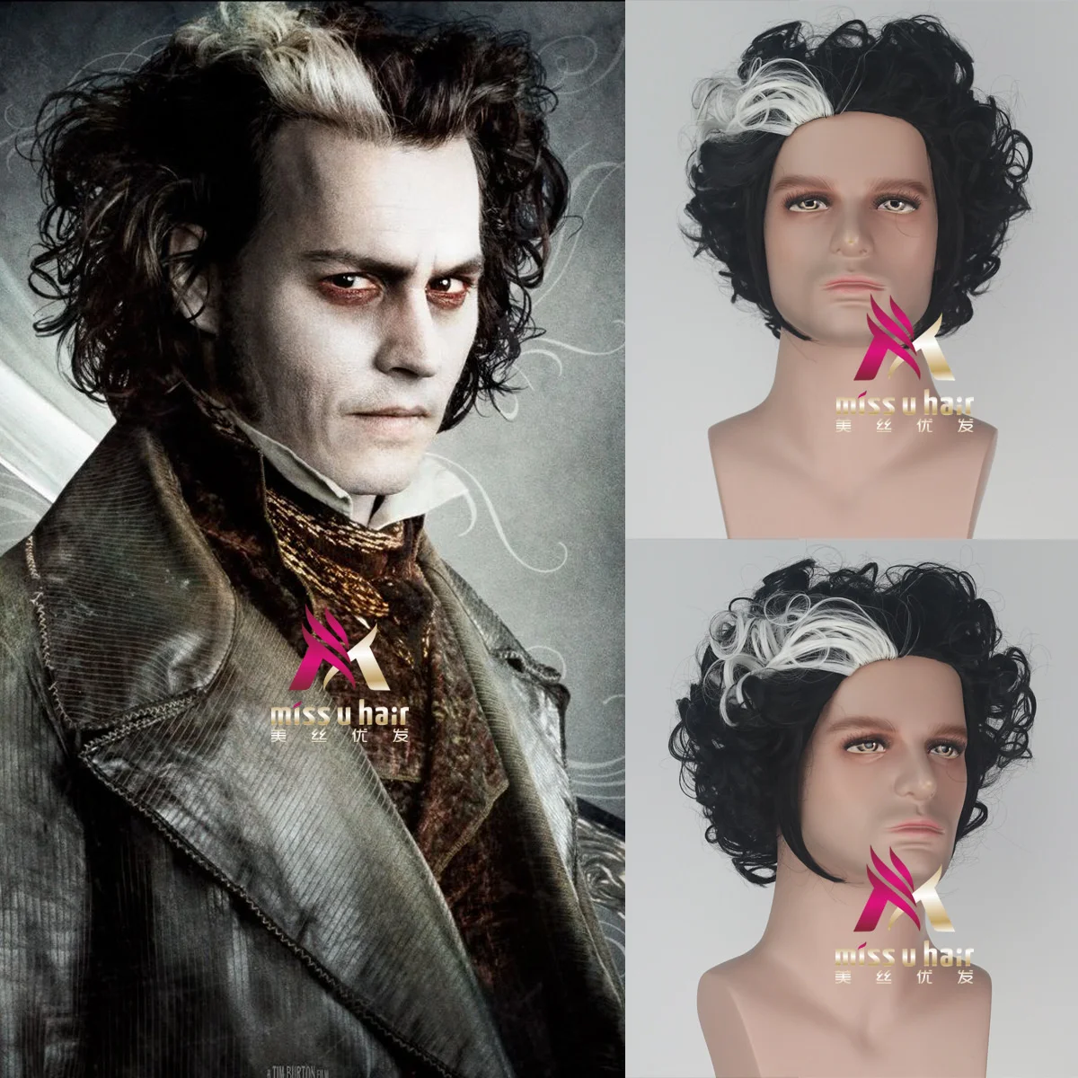 Новинка, хит продаж, аниме, Повседневная сценическая одежда для Хэллоуина, парикмахера Тодда, белого цвета, черные короткие вьющиеся волосы, костюм для костюмированной вечеринки