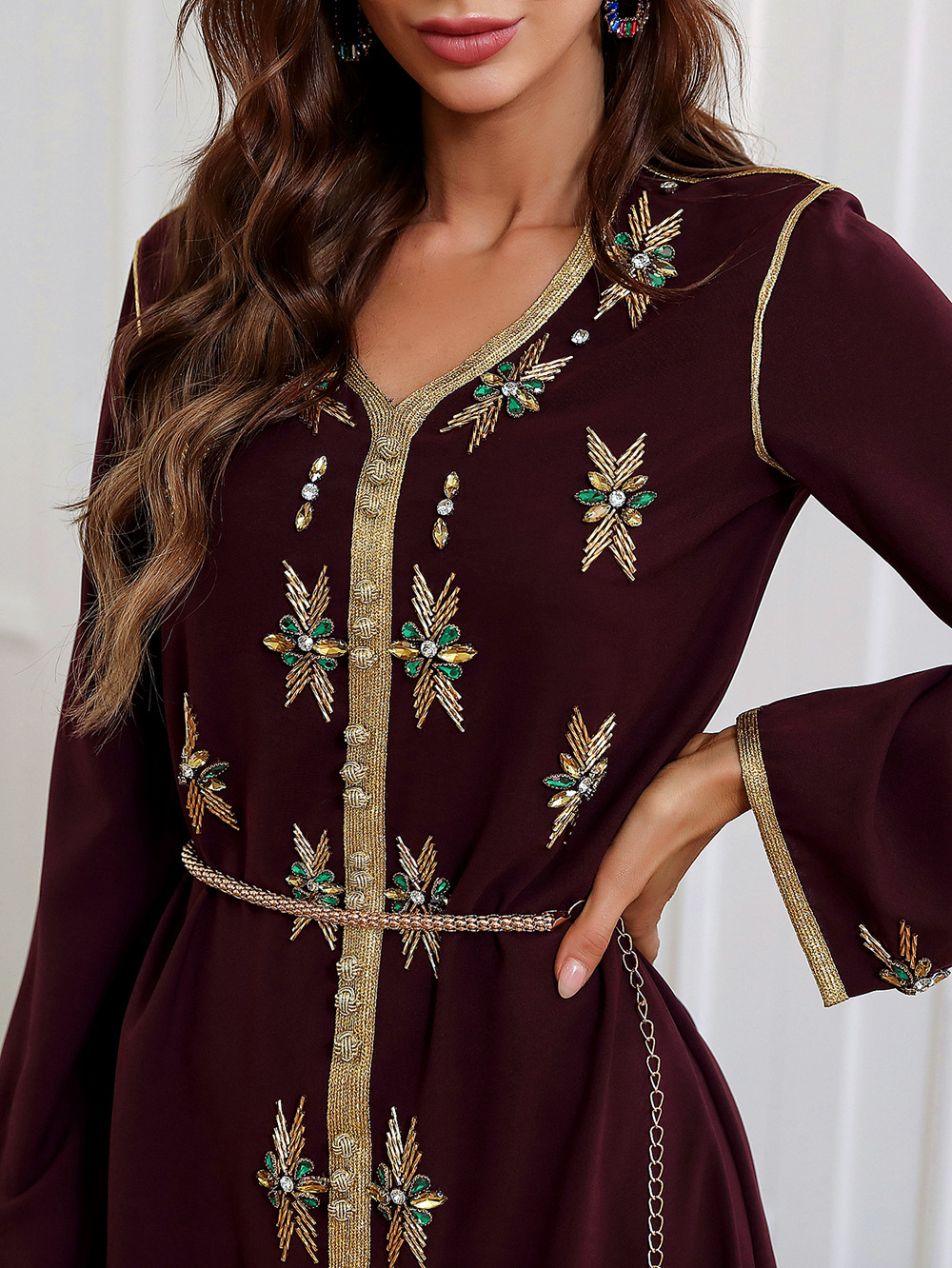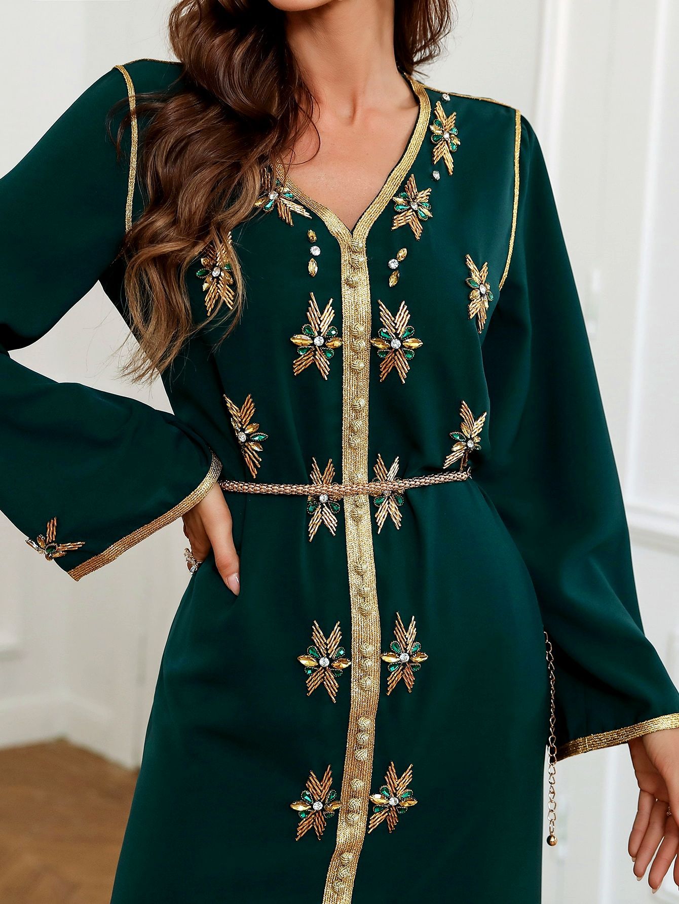 Тяжелая промышленность, ручная работа, v-образный вырез, золотые стразы, Халат