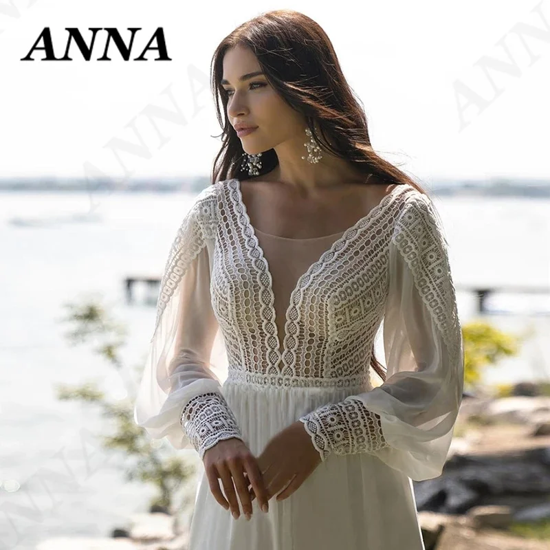 Анна красавица, потрясающее свадебное платье, v-образный вырез, кружевные ремешки с аппликацией, Bohomian, шнуровка Vestido De