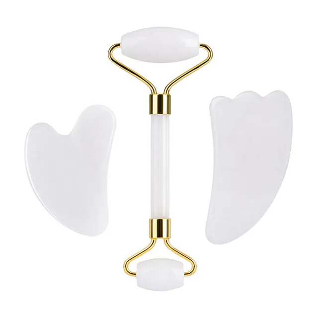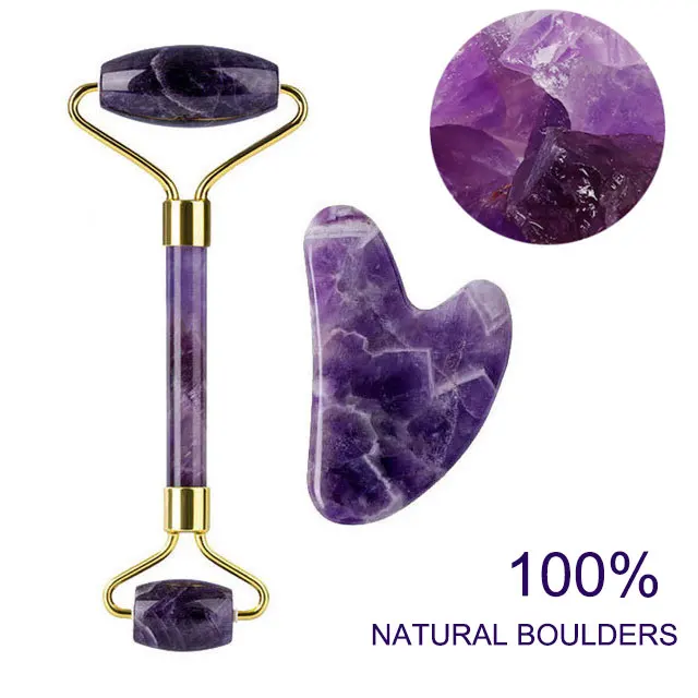 Ролик для лица Gua Sha массажер гуашь скребок натуральный аметист Роза нефрит камни ролик и Гуаша набор уход за кожей лица Инструменты