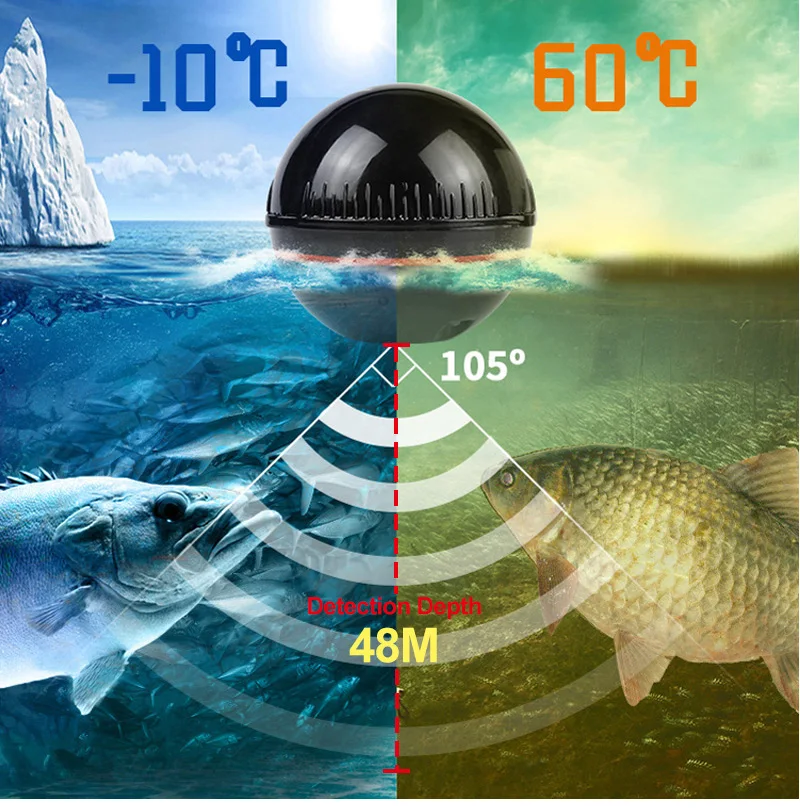 Mosodo Wireless Sonar Fishing Finder 48m/160ft Water Depth Smart Phone Fish Finder App Lake Sea Fishing Tackle IOS & Android