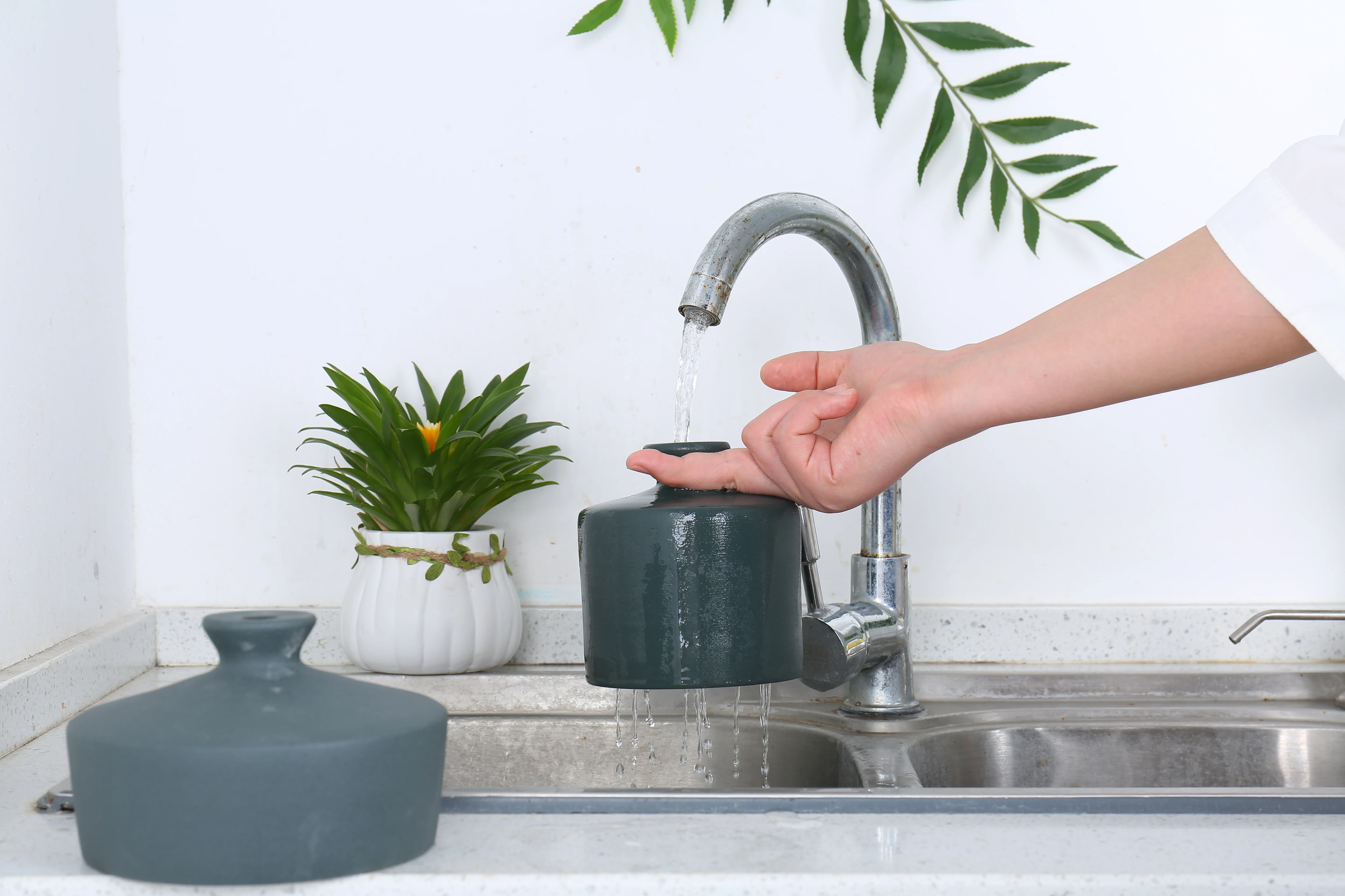 Различные методы орошения: Может быть непосредственно с входа над резервуаром для полива от дождя, чтобы быстрее заполнить или поместить в контейнер с водой, благодаря давлению воды из керамической лейки, вы также можете сделать чайник полным воды