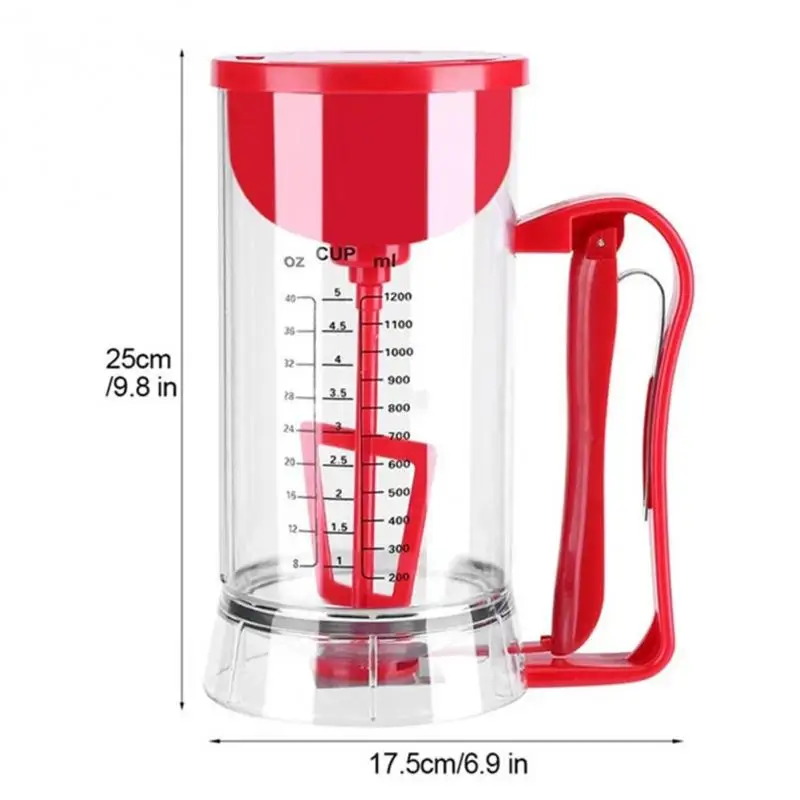 Удобно готовить, смешивать и распределять все в этом многофункциональном устройстве. Питание от батарей, нажмите красную кнопку в верхней части, чтобы начать смешивание автоматически и нажмите снова, чтобы остановить. Потяните за ручку, чтобы распределить количественную дозу до блинной машины или бумажного стаканчика. Широко используется для приготовления и изготовления различных кондитерских изделий, таких как кекс, блинчик, вафельница, печенье и маффин.