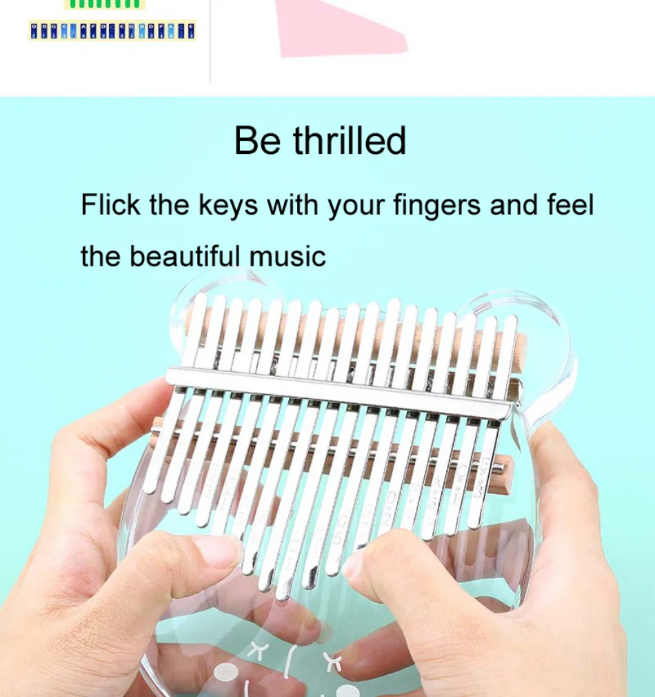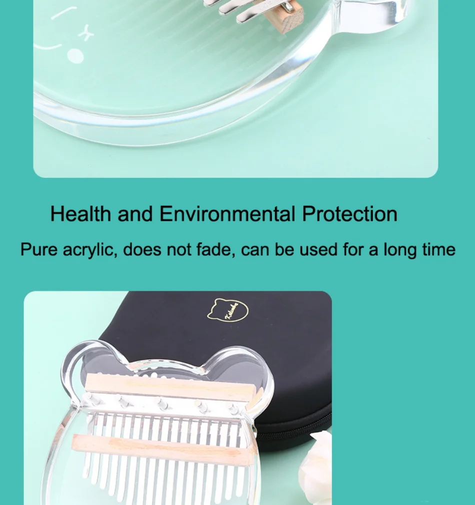 Этот калимба в форме милого медведя изготовлен из прозрачного акрилового материала, с красивым внешним видом и изысканным качеством изготовления.