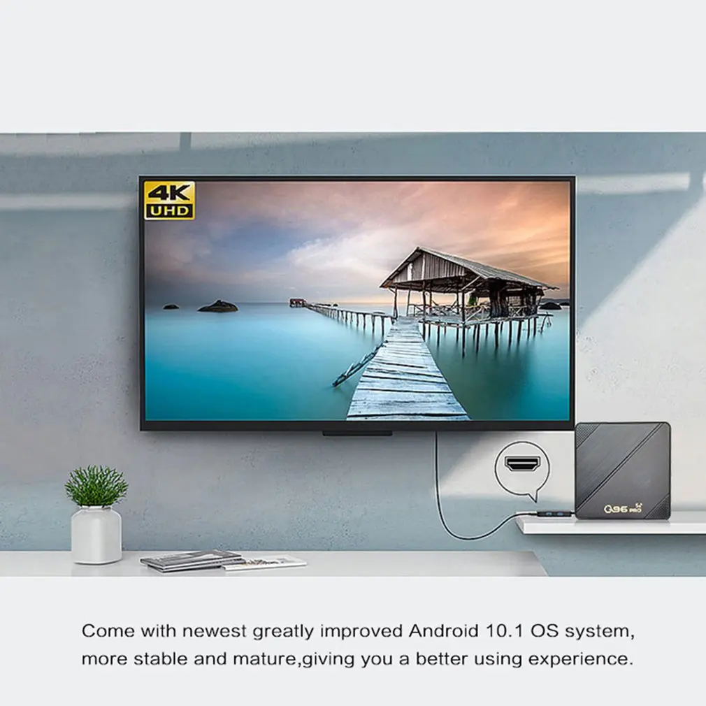 Smart TVbox изготовлен из качественных материалов, 4K и 4 ядра процессора, обеспечивая вам захватывающий опыт просмотра фильмов.
