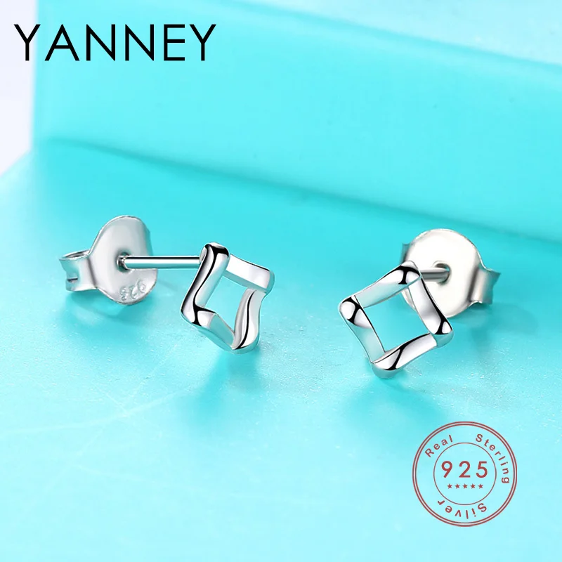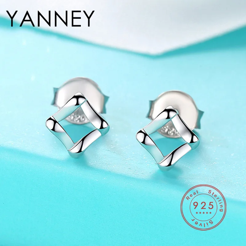 Женские квадратные серьги-гвоздики YANNEY, модные простые серьги серебряного цвета с полой геометрией, очаровательные ювелирные изделия для свадебной вечеринки