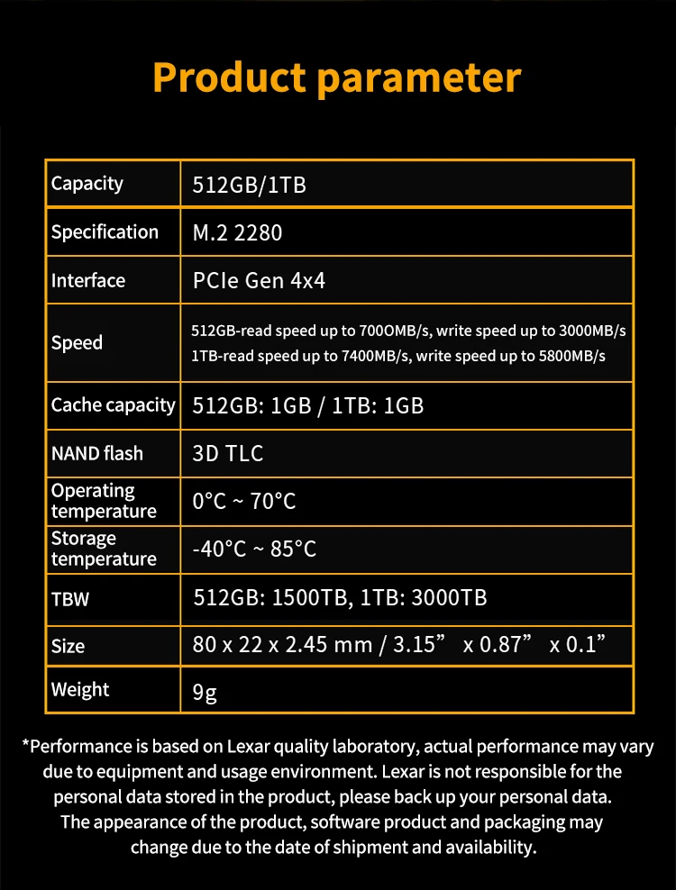 ● Обработанная PCIe Gen 4 × 4 спецификации, поддержка NVMe1.4 высокоскоростной стандарт технологии, скорость чтения до 7400 МБ/с., скорость записи до 5800 МБ/с., ускорить загрузку работать если вам понравилась эта игра сокращает скорость загрузки и эффективно улучшает отзывчивость системы. Обновление до Lexar Профессиональный NM800, по сравнению с предыдущего поколения PCIe Gen 3 × 4 Производительность, скорость увеличивается примерно в 2,1 раз, производительность мощнее, И вы можете наслаждаться плавным опытом.