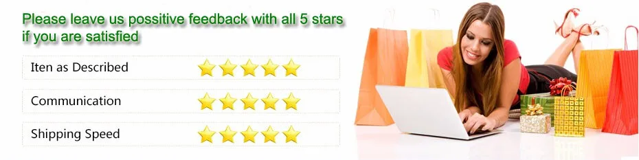 А. Если вам нравятся наши товары, пожалуйста, добавьте наш магазин в список «Мои любимые».B. Мы оставим вам положительные отзывы после оплаты. Мы надеемся, что вы такжеОставьте положительные отзывы и 5 звезд DSRЕсли вы удовлетворены нашим товаром и обслуживанием.C. Отзывы очень важны для нас.Мы просим Вас связаться с нами немедленно, прежде чем дать нам низкие отзывы,Чтобы мы могли удовлетворительно решить ваши проблемы.D. Если у вас есть какие-либо проблемы, пожалуйста, свяжитесь с нами через Aliexpress сообщение, мы ответим на ваш адрес электронной почты в течение 24 часов (за исключением выходных и праздничных дней).![]()