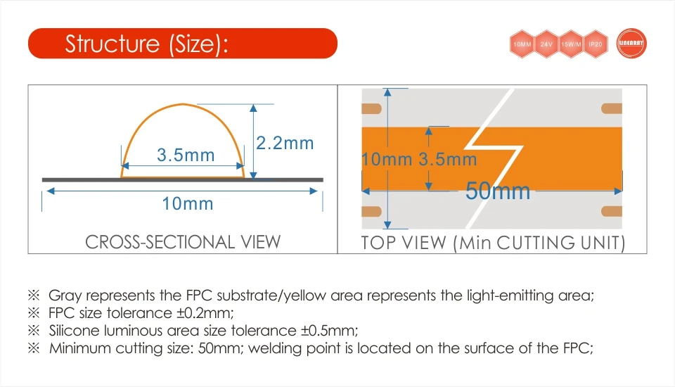 Материал: Кремний, FPC, светодиодный флип-чип и 15 см 2P(UL 20AWG) входной провод;