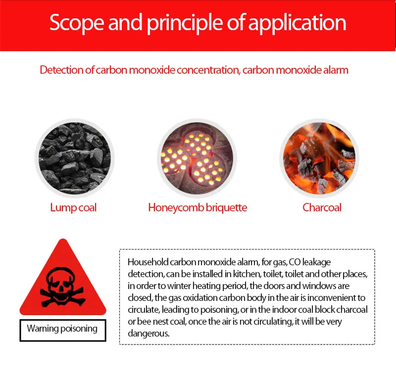 Когда детектор обнаруживает, что газ угарного газа превышает 100ppm, он будет сигнализировать, красный светильник будет мигать, и звуковой сигнал будет звучать четыре раза с интервалом в 5 секунд. В это время вы должны немедленно закрыть клапан, открыть двери и окна, чтобы обеспечить циркуляцию воздуха в помещении, и уведомить соответствующих специалистов, чтобы иметь дело. В случае пожара, когда концентрация дыма превышает 0.1% дБ/м, он будет оповещаться, мигает синий светильник, и звуковой сигнал непрерывно срабатывает.