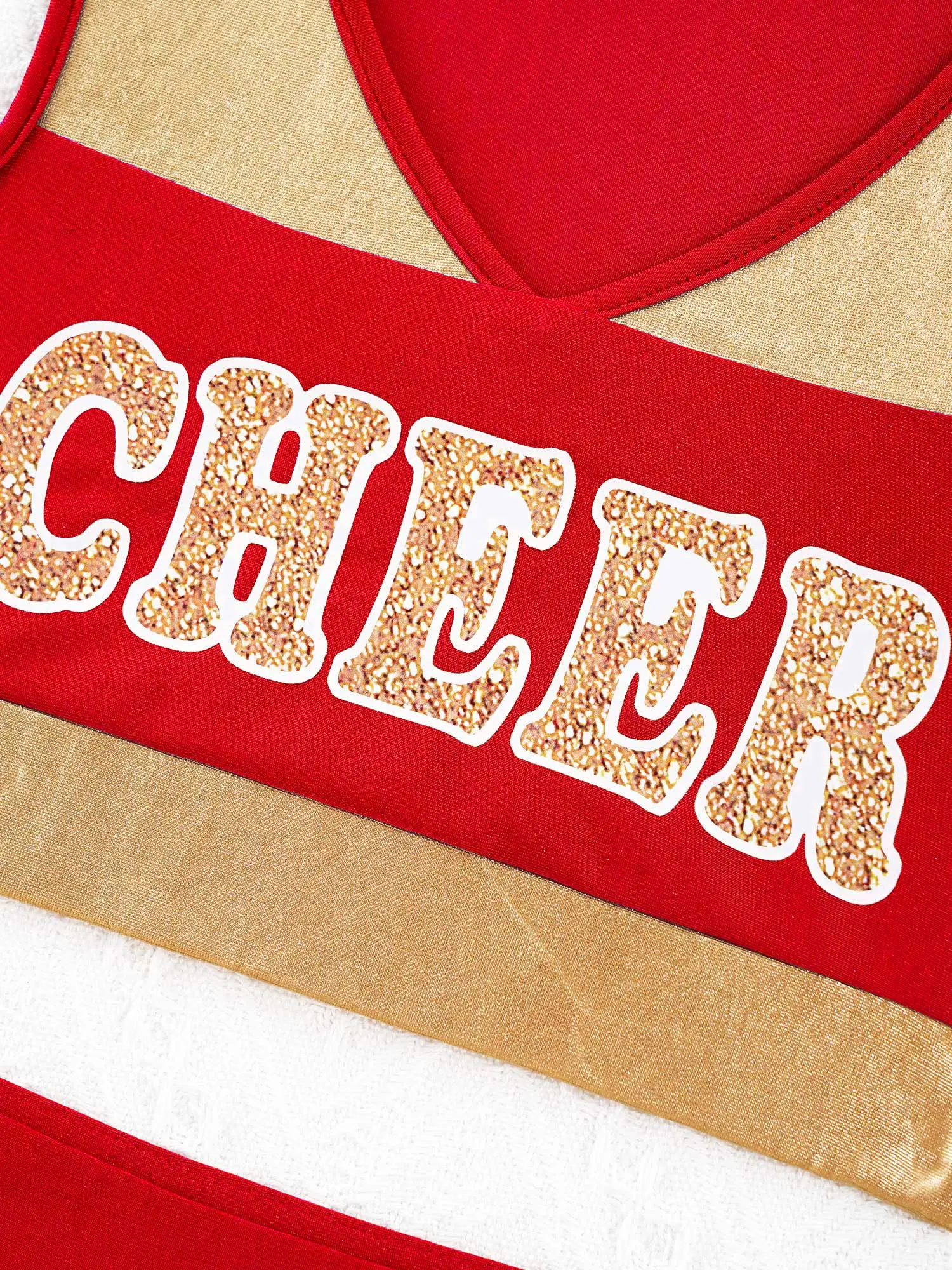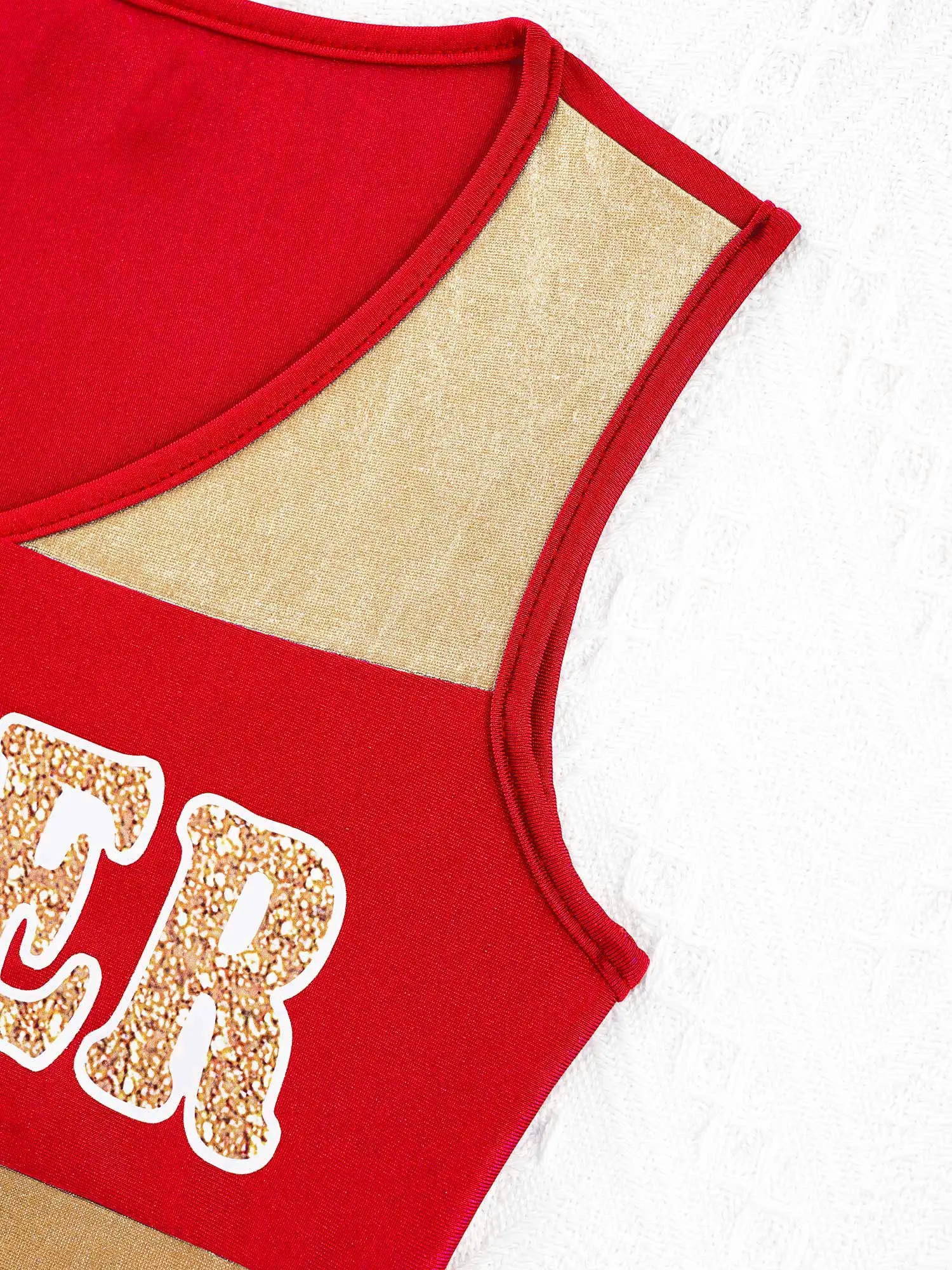 Укороченный топ без рукавов и v-образный вырез; Принт с надписью «CHEER» спереди.
