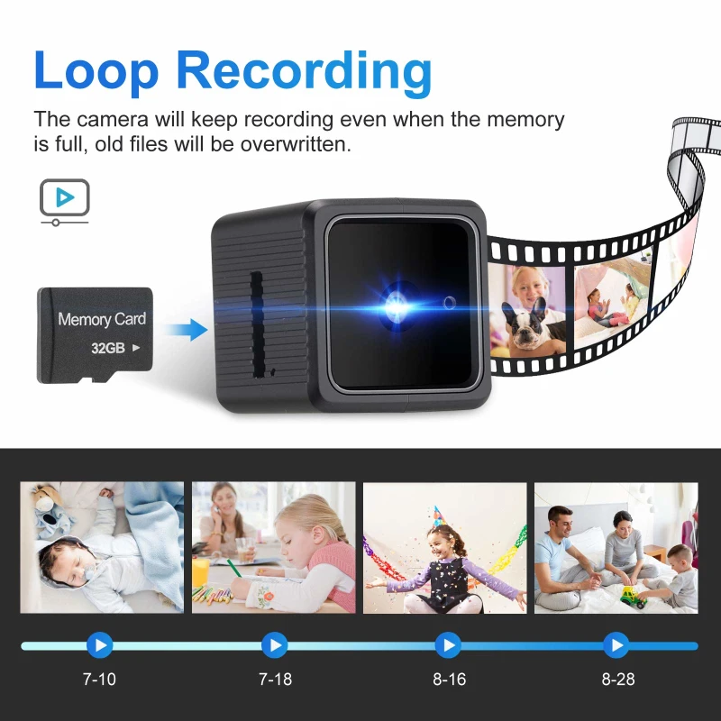 [Круговая запись] камера наблюдения поддерживает круглую запись. Это означает, что когда вы хотите записать новое видео, вам не нужно сначала удалять старый файл. Камера автоматически перезаписывает старые файлы.