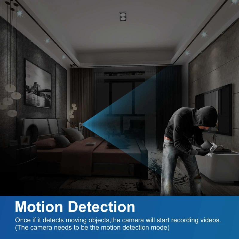 [Обнаружение движения] для экономии заряда батареи и хранения камера оснащена чувствительным датчиком обнаружения движения. Функция ручного запуска запустит режим ожидания, когда нет движущегося объекта, но как только обнаружится небольшое движение, он начнет запись. После 30 секунд движения не обнаружено, он снова переключится в режим ожидания для экономии энергии.