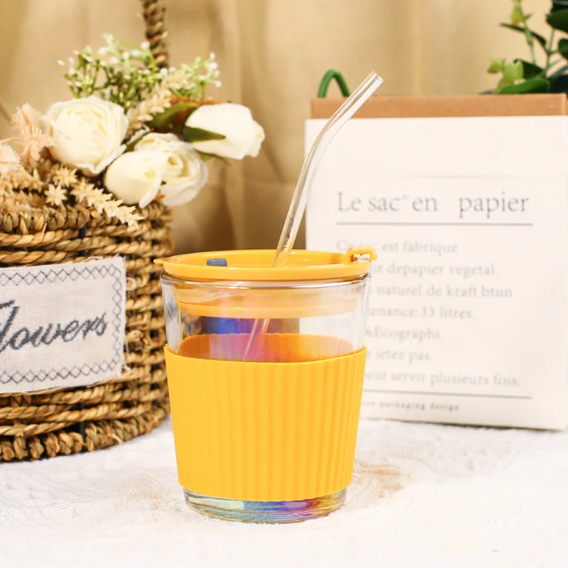 Стеклянная соломенная чашка с теплоизоляционным покрытием 350/450 мл портативный Кофе Молоко чай сок Многоразовые стеклянные офисные и бытовые