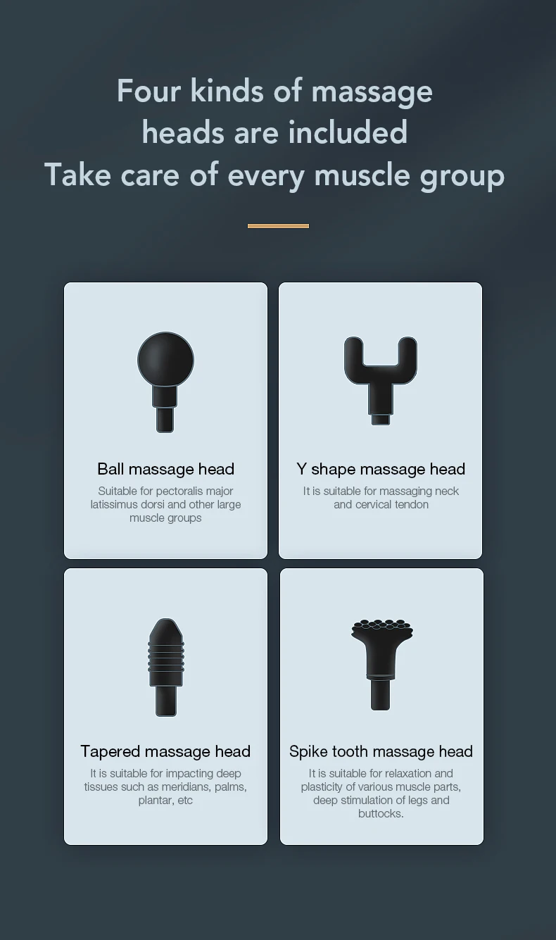 Четыре вида массажных головок включают в себя заботу о каждой группе мышц