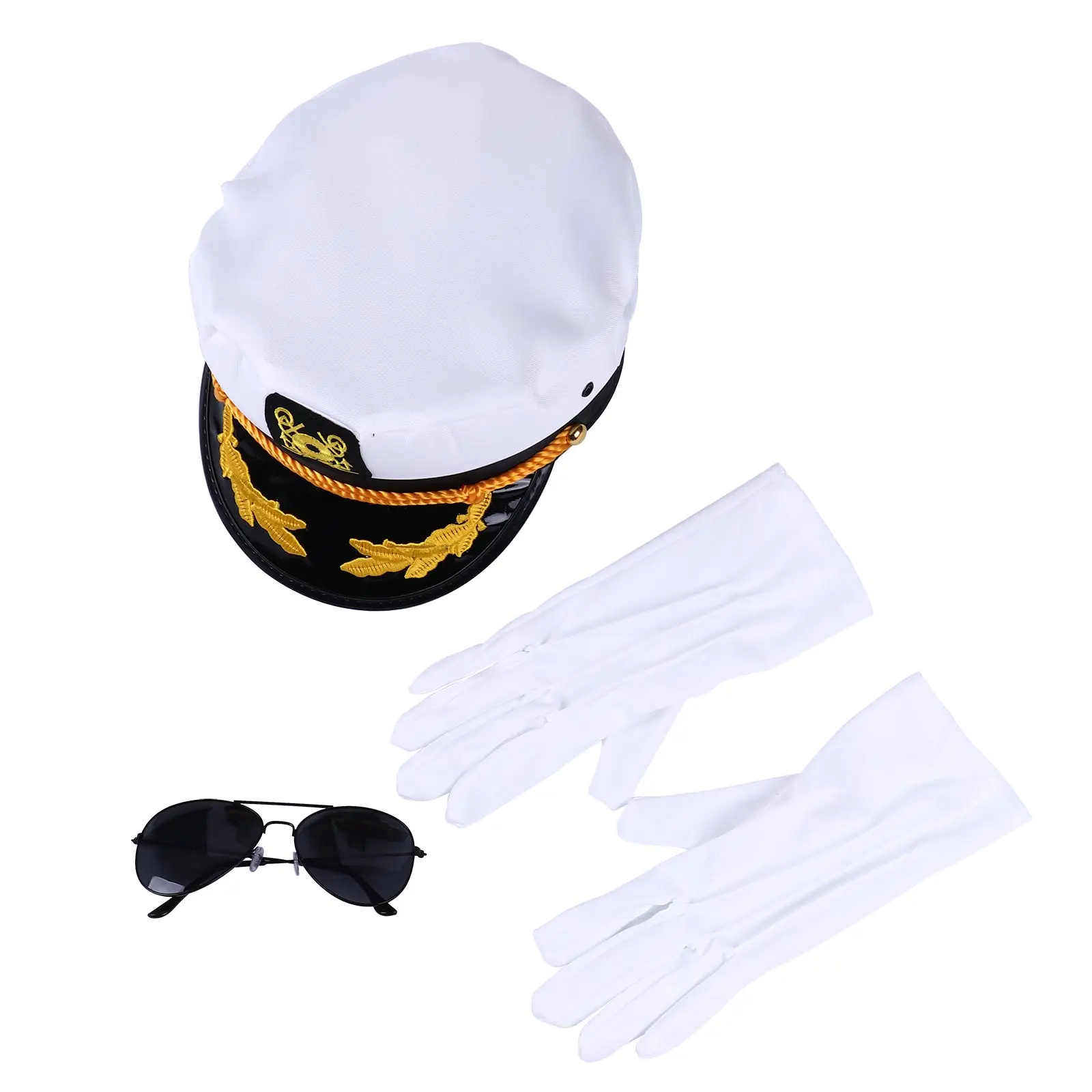 Костюм синий аксессуары Кепка тайн шляпа яхты Матросская Кепка ретро очки авиаторы флаг поднятие белые перчатки набор.