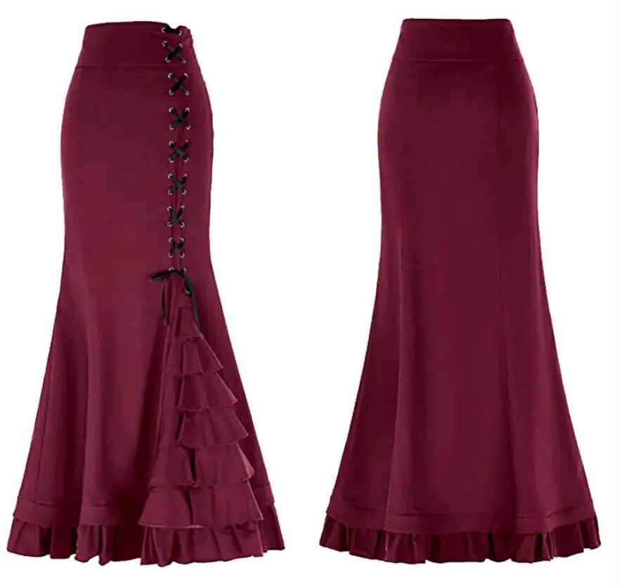 2022, винтажные женские юбки, юбка в готическом стиле русалки, длинная юбка в стиле стимпанк, длинная юбка в викторианском стиле с хвостом, модная бандажная юбка, большие размеры 15