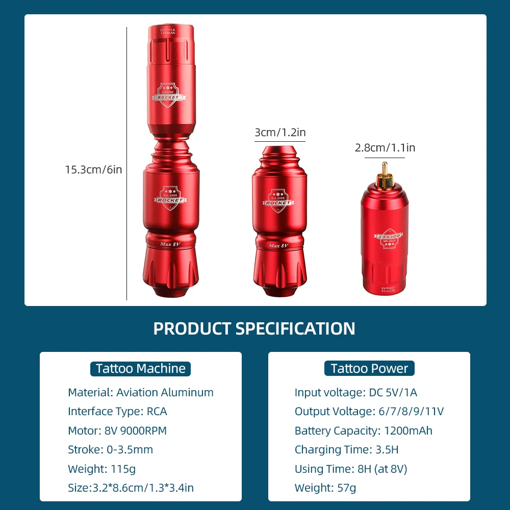 Мини-машина для тату с ракетой, набор, Япония, мотор, беспроводная ручка для татуировки, питание, RCA Интерфейс, роторная ручка для татуировки, набор, Перманентный макияж
