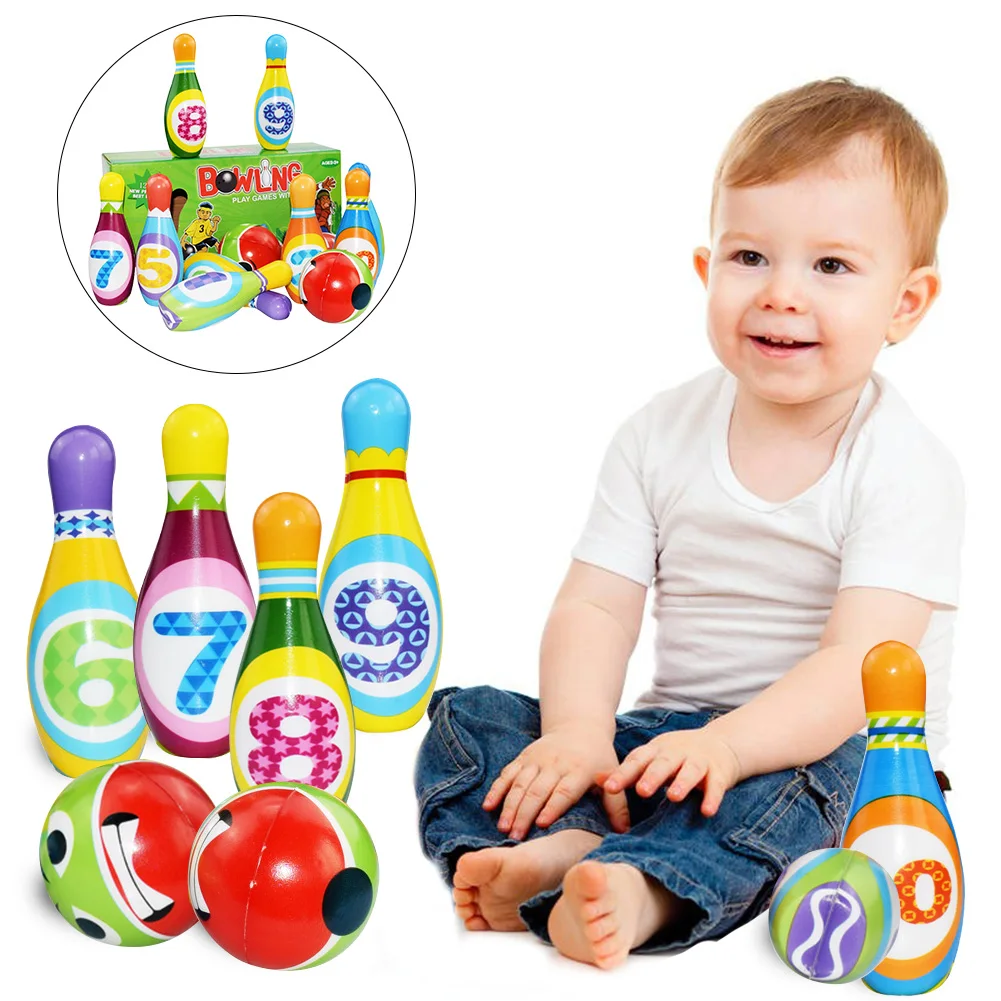Детский Набор для игры в боулинг из искусственной кожи с красочным рисунком, принадлежности для боулинга, спортивная игра для боулинга, интерактивные домашние виды спорта для родителей и детей