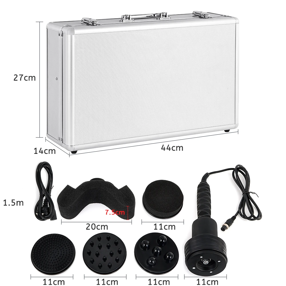 Это оборудование основано на принцип вибрации физиотерапии. Вибрационная энергия, излучаемая различными образными зондами, может растворять жировые слои и ускоряет кровообращение для достижения эффекта похудения тела. В то же время, он может эффективно снять напряжение и усталость мышц, а также снять отечность.