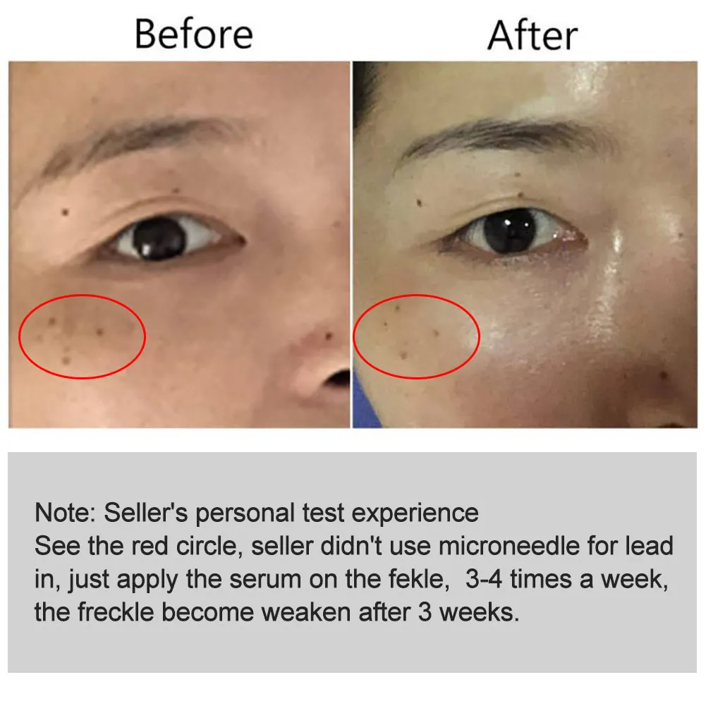 Посмотрите на красный круг, продавец не использовать с микроиглами для ведущую роль в, просто нанесите сыворотку на fekle, 3-4 раза в неделю веснушки становятся ослабить через 3 недели.